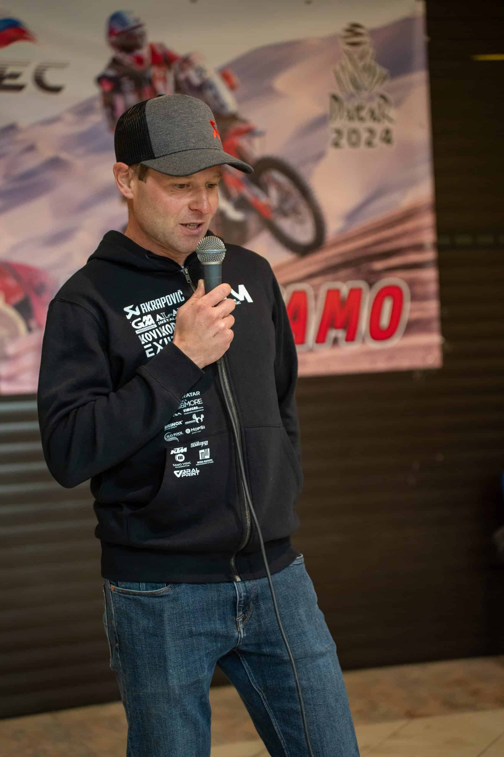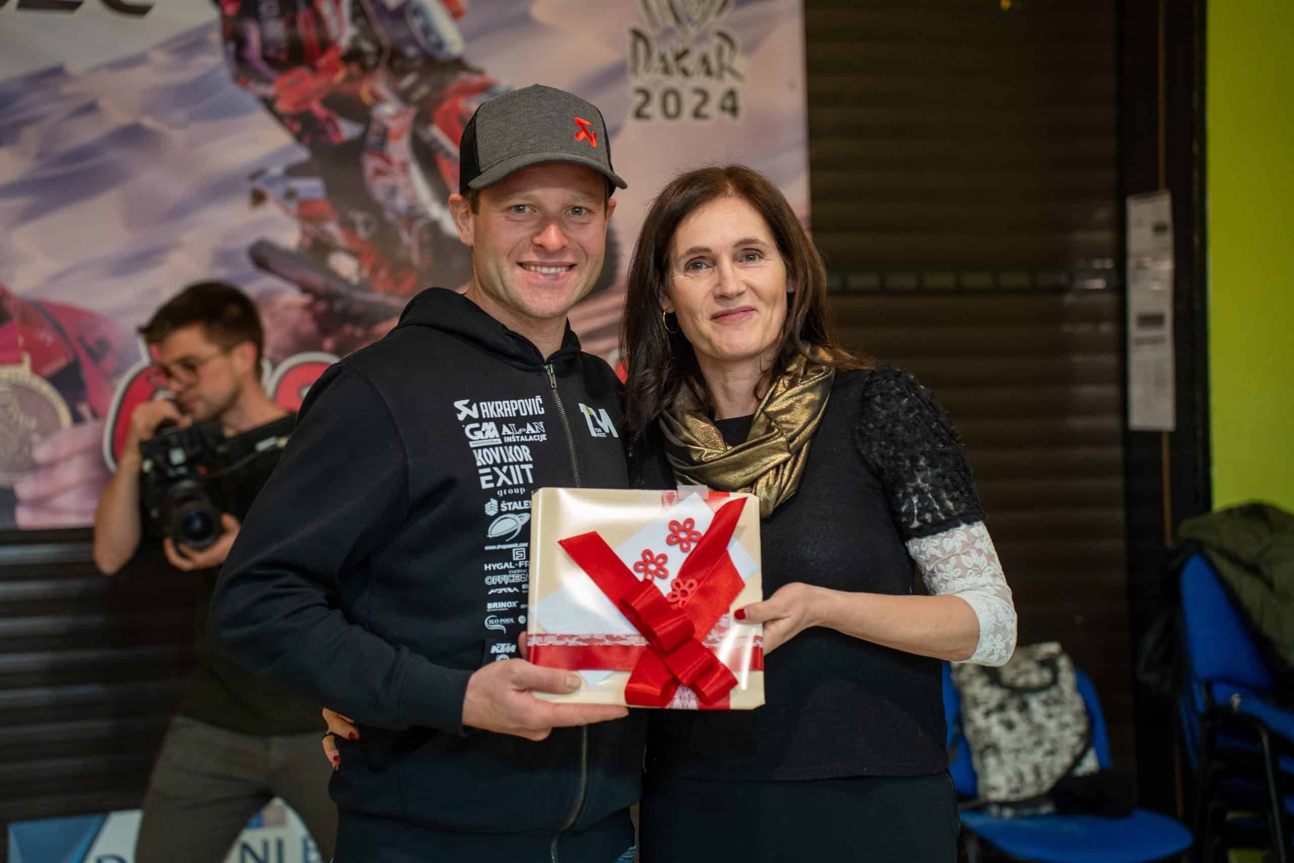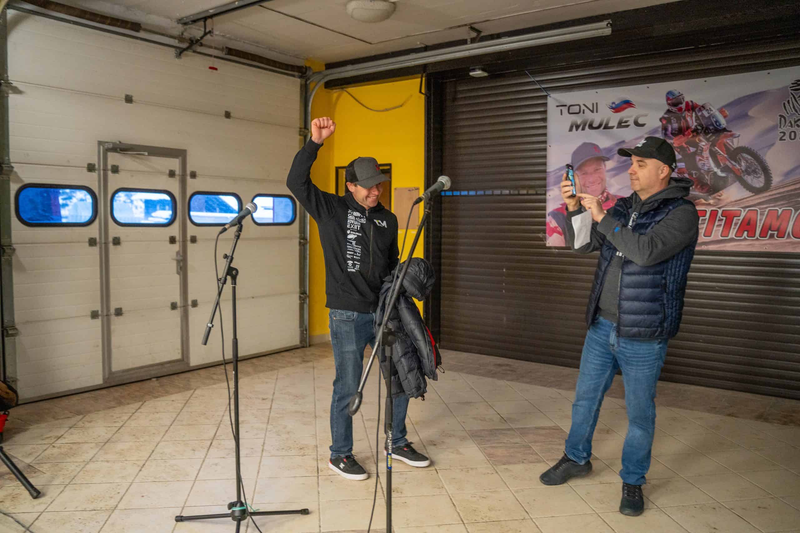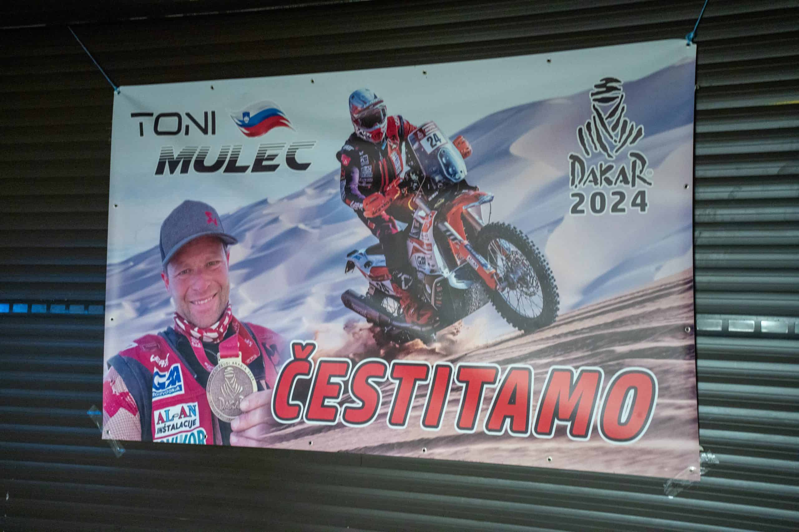 Vidno ganjen in presenečen nad številom zbranih na sprejemu, je Toni povedal, da je bil reli Dakar letos še težji kot lani, delno zaradi suhega vremena in suhega zraka (lansko leto je bilo veliko dežja), etape so bile daljše, posledično je bilo spanca manj in je bila celotna izkušnja zelo naporna, tako psihično kot fizično. Toniju se zdi že sama udeležba na takšnem reliju svojstven dosežek, da reli zaključiš in to celo na 15. mestu, pa je nekaj zares neverjetnega. Kljub temu, da je bil letos med vožnjo bolj previden, je vseeno doživel dva padca, drugi je pustil tudi nekaj posledic na motorju, kar ga je sicer stalo nekaj dragocenega časa, a je neustrašni motorist reli vseeno zaključil z izjemnim dosežkom.