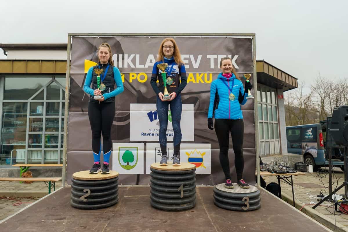 Tudi v ženski konkurenci na vrhu glede na lani ni bilo spremembe, najhitrejša je bila tudi tokrat Tina Vrhovnik, s časom 1:26,10. Na drugo mesto se je povzpela Vanesa Pečoler (1:35,20), kot tretja najhitrejša ženska je v cilj pritekla Mateja Mavrin Belej (1:41,00). Medalje in pokale je najboljšim tekmovalcem podelila predsednica Mladinskega sveta Ravne, Tara Ledinek.