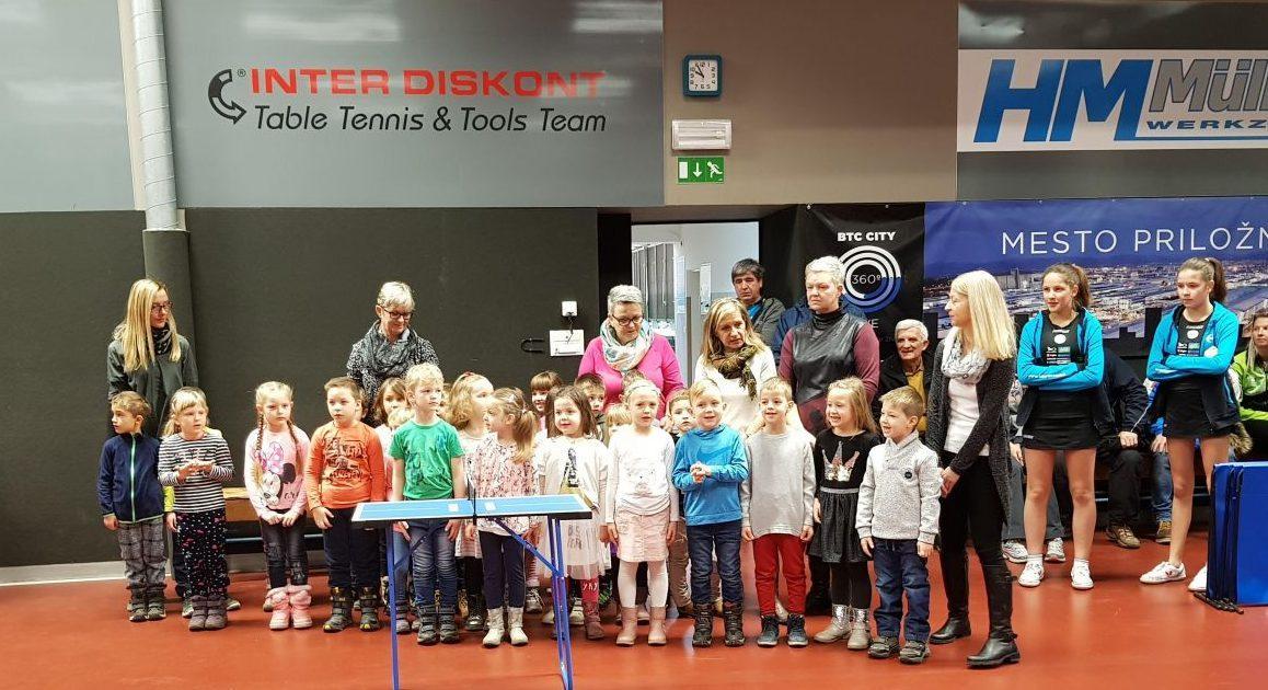 Za popestritev so s kulturnim programom poskrbeli najmlajši, ki jim je NTK Fužinar Interdiskont podaril dve mini mizi za namizni tenis[/caption]
