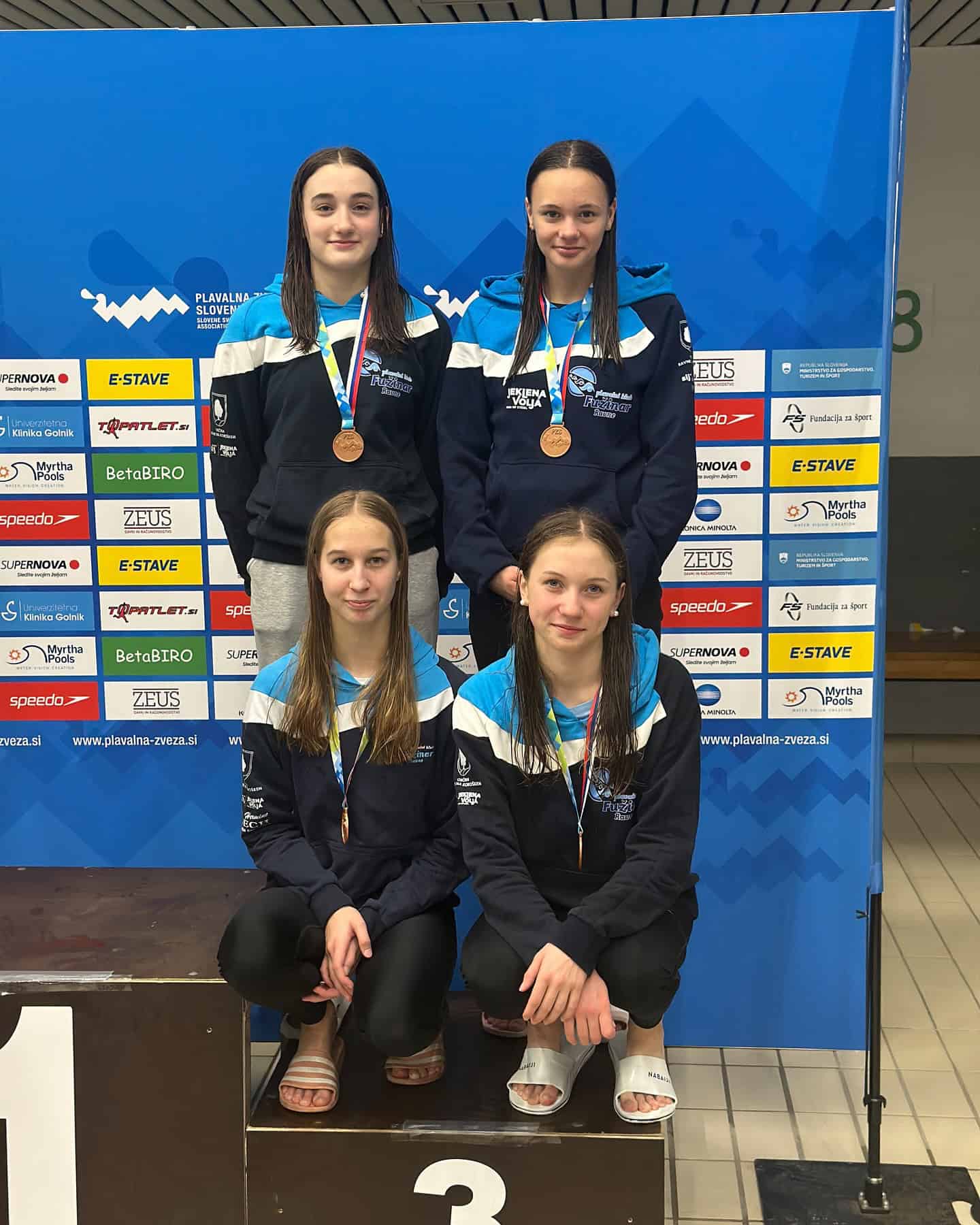 V popoldanskem delu si je ženska kadetska štafeta 4x200 prosto v postavi Aleksandra Gnamuš Šlebnik, Pia Božič, Lija Helbl in Zara Knez priplavala 3. mesto. Že dopoldne pa so si kadeti in kadetinje v mešani štafeti 4x100 prosto v postavi Nik Markač, Žan Luka Vušnik, Aleksandra Gnamuš Šlebnik in Pia Božič priplavali 3. mesto.