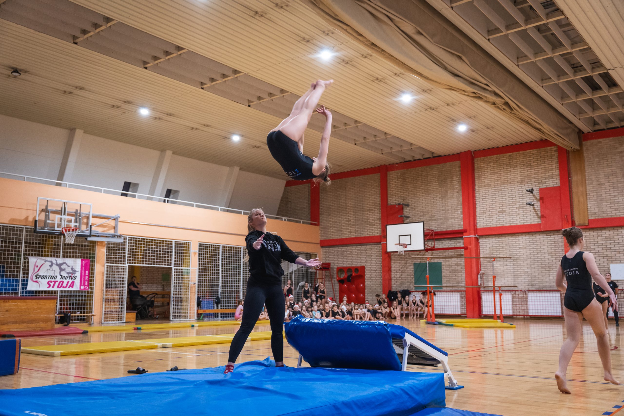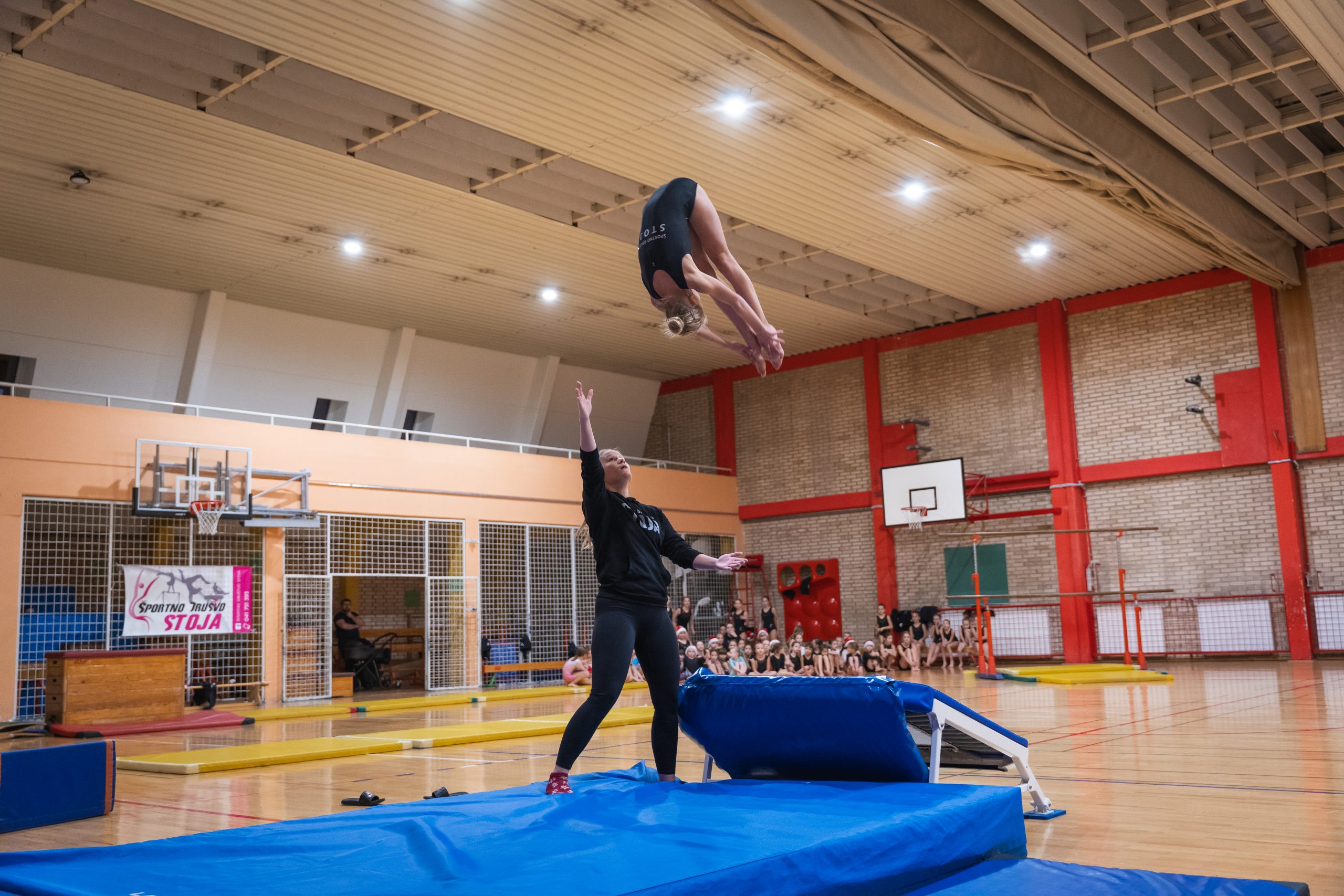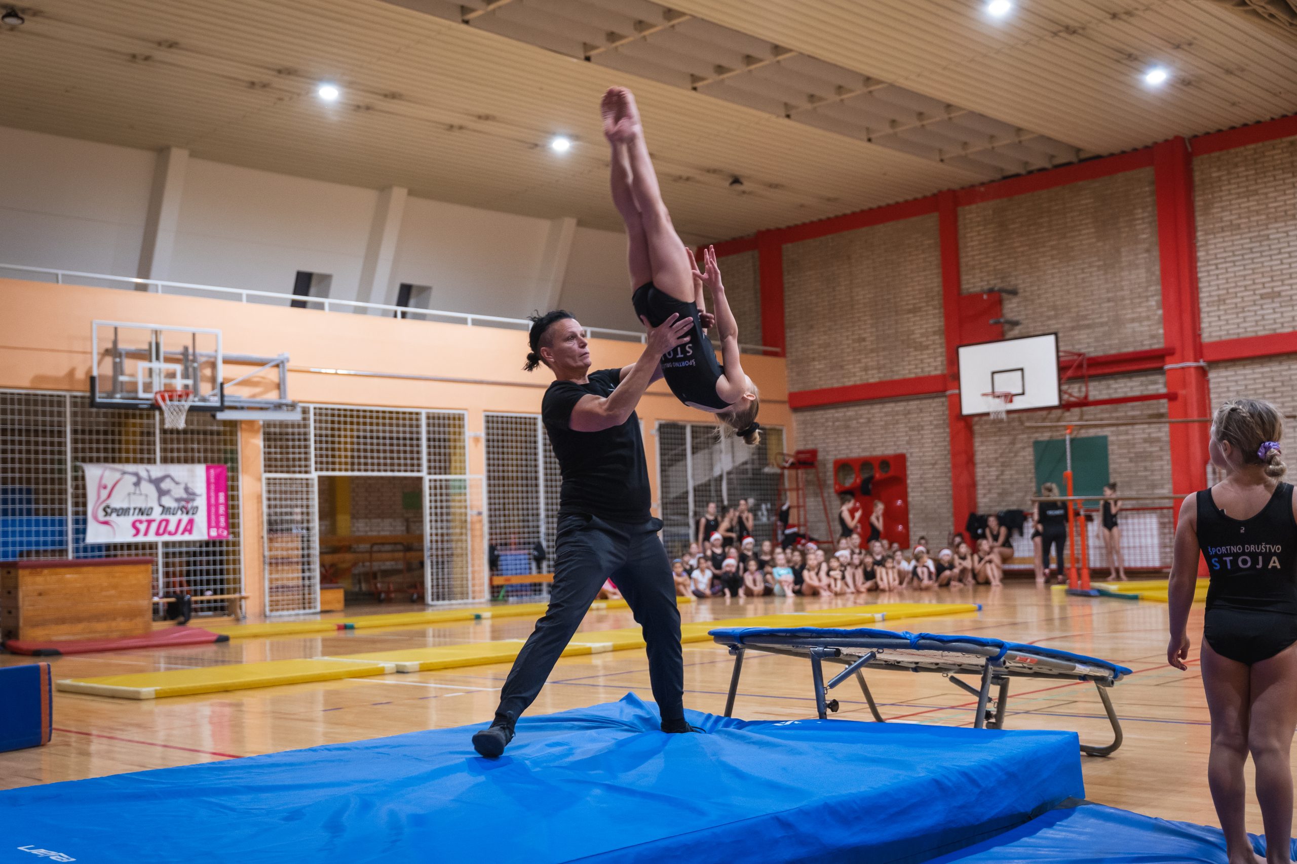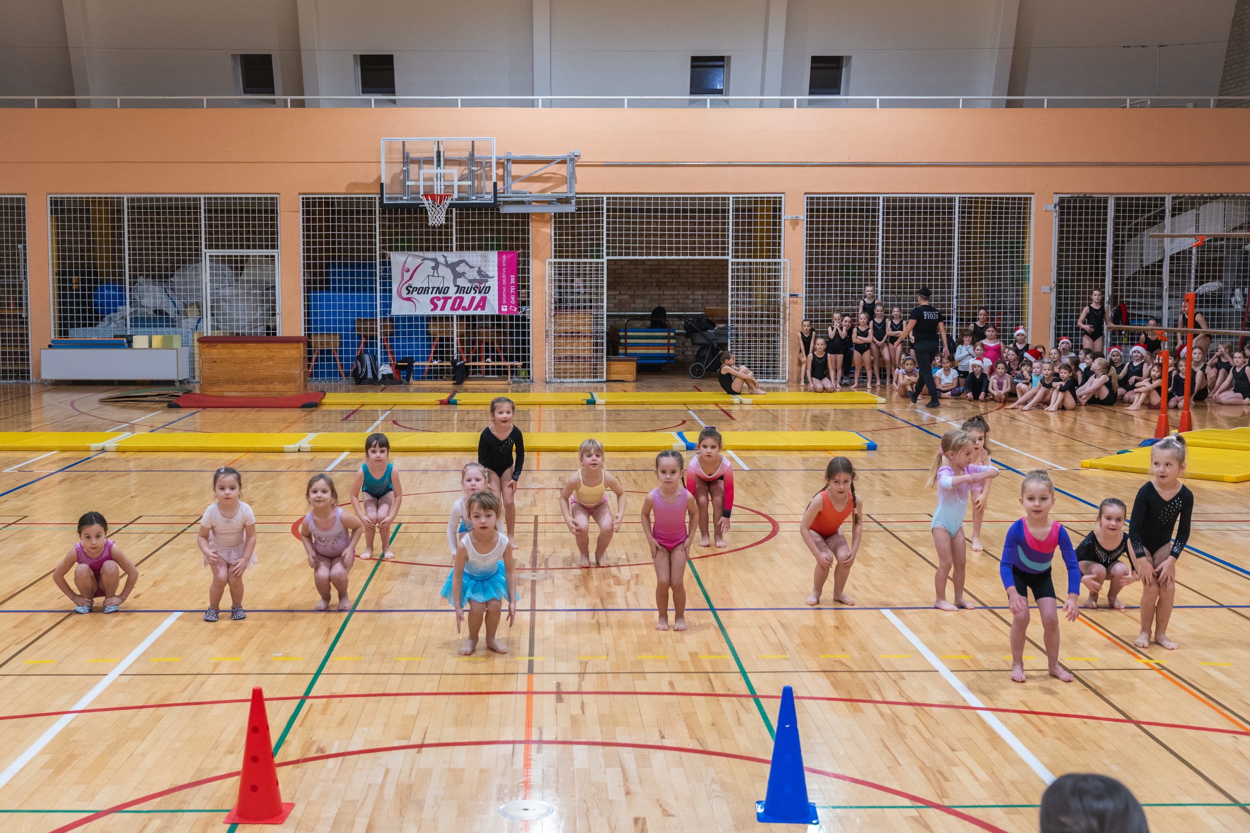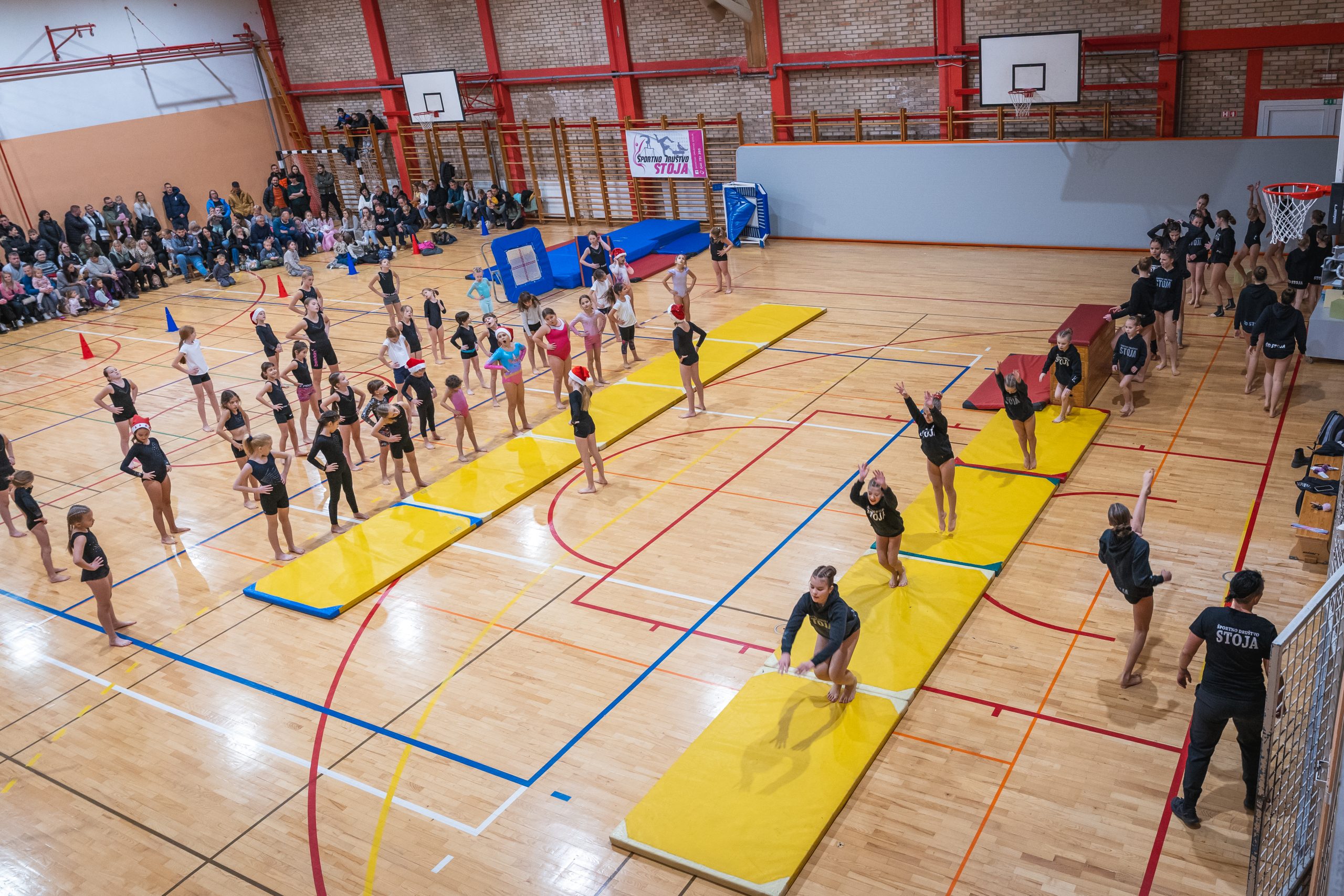 Na prireditvi so se predstavile vse gimnastičarke ŠD Stoja: od najmlajših iz vrtca, preko rekreacijske skupine, pa vse do izkušene tekmovalne ekipe. Vsaka skupina je pripravila svoje točke, prežete z božičnim duhom, bleščečimi nasmehi in nalezljivo energijo. Stoje, prevale, premete, salte in še mnogo drugih točk so gledalci nagradili z bučnimi aplavzi.