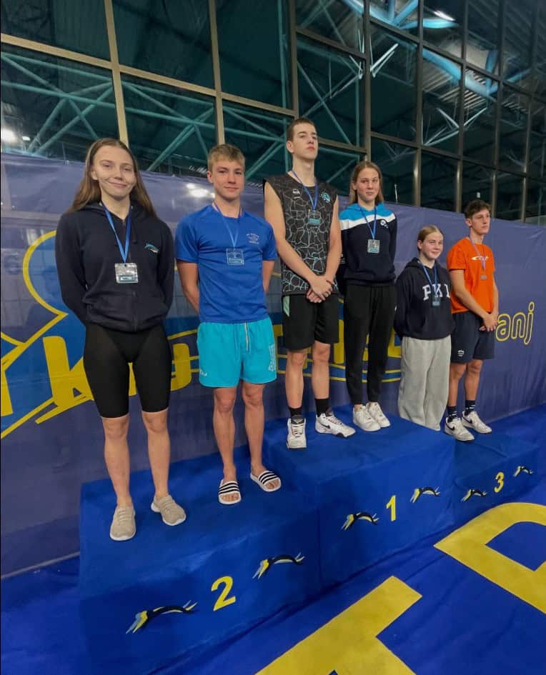 - Nija Gerdej na 50 hrbtno, Janja Šegel na 100 prsno in Zara Podržavnik na 200 hrbtno so osvojili bron