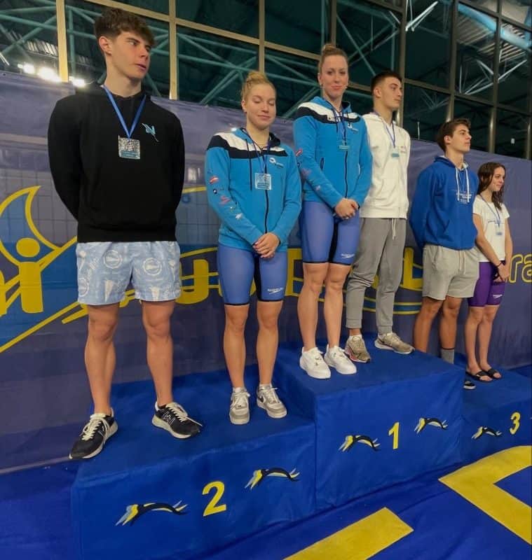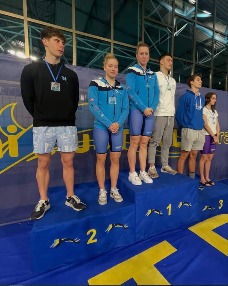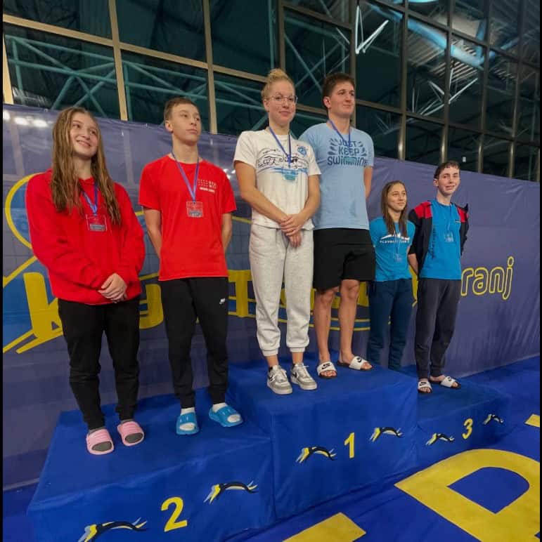 - Zara Podržavnikna 400 prosto, Nija Gerdej na 50 hrbtno in 100 prsno ter Marcel Metulj na 100 prsno so si priplavali zlato