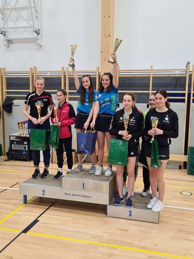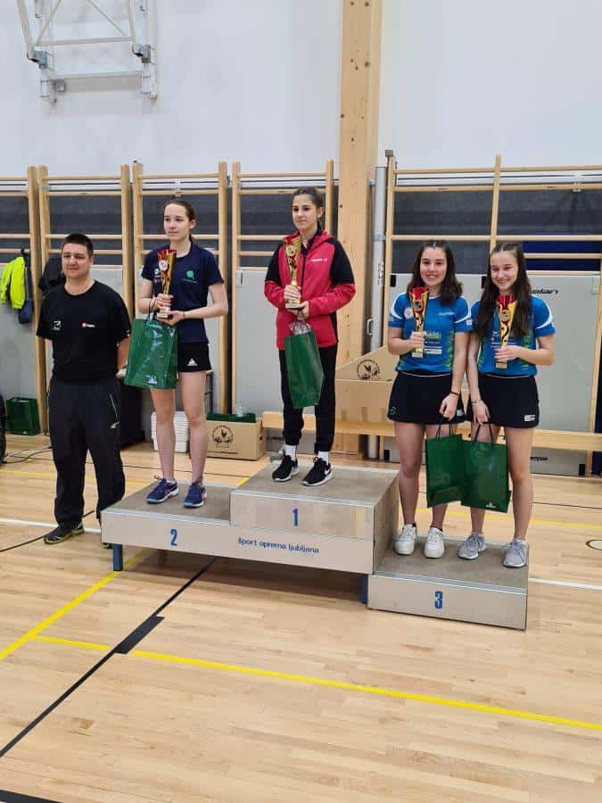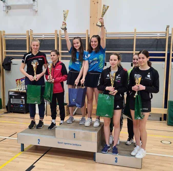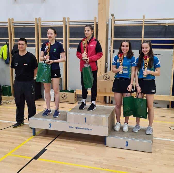 Pri ženskah je Nuša Kadiš že v soboto priigrala naslov državnih prvakov v mešanih dvojicah ter v nedeljo s klubsko soigralko Polono Horvat osvojila državni naslov v ženskih dvojicah. Horvatova je na stopničkah mešanih dvojic zasedla 3.-4.mesto, v posamezni konkurenci pa sta obe naši igalki zasedli 3.-4.mesto.
