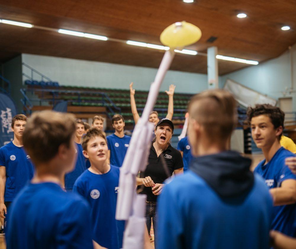 Po uvodnih besedah je Petra Majdič s svojo ekipo mlade odbojkarje spravila v akcijo, da so soočeni z različnimi izzivi prebujali jekleno voljo. Skozi nekoliko drugačen trening jim je skušala približati nujnost osmišljanja ciljev in sprejemanja hitrih odločitev v danih situacijah.