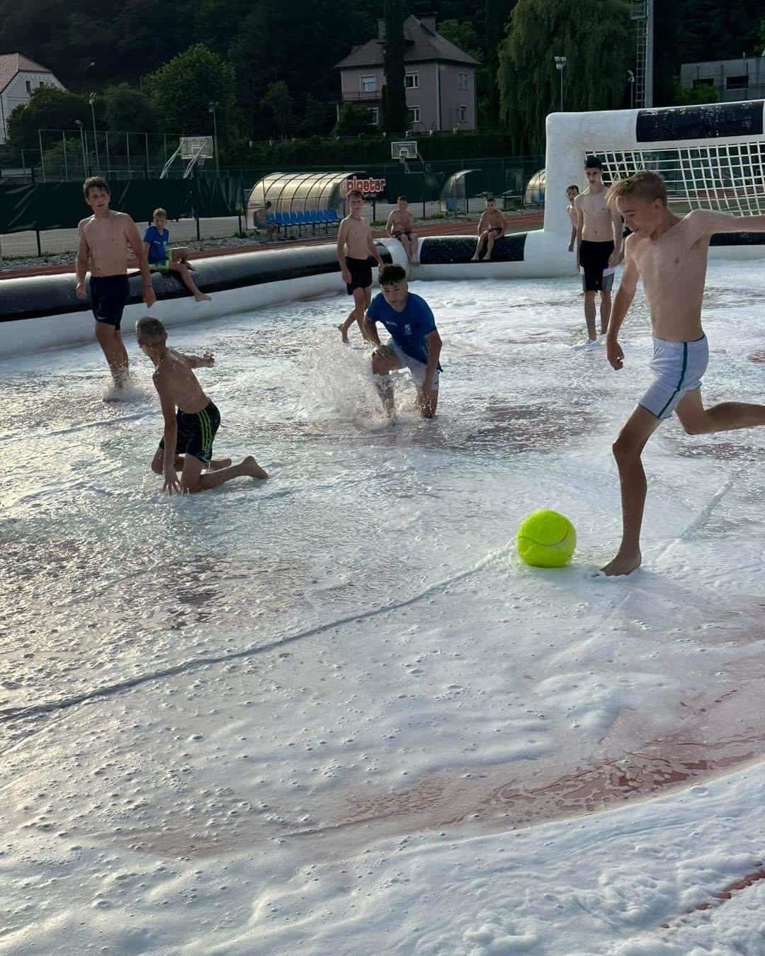 Otroci izredno uživajo tudi na vodni drči in pa pri škropljenju svojih trenerjev. Lahko bi rekli, da jim »vrnejo« nazaj za kakšen preveč naporen trening.