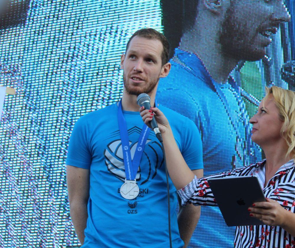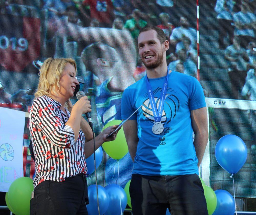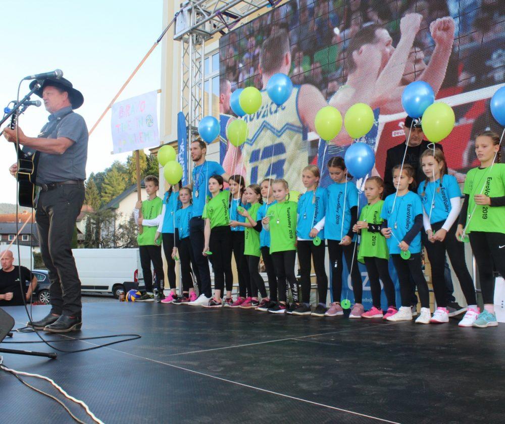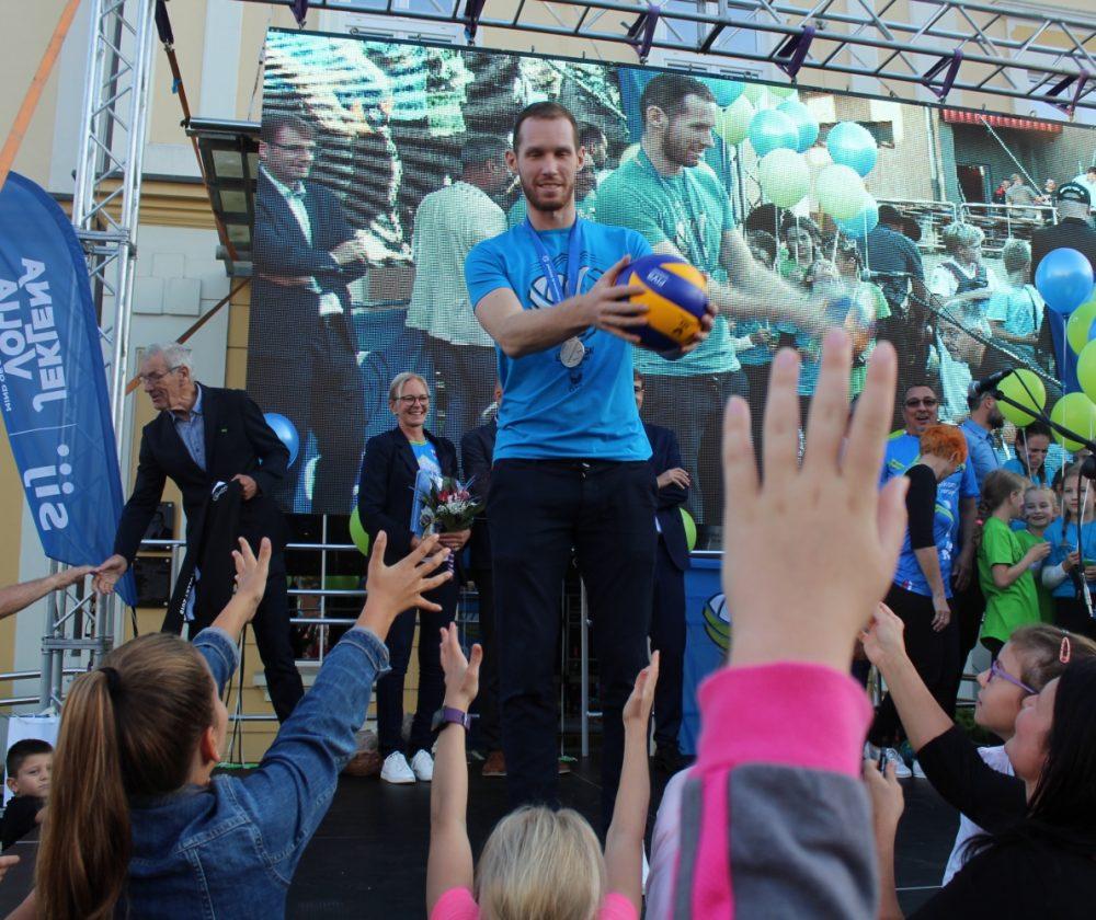 Na Kongresnem trgu v Ljubljani se je včeraj zbralo več tisoč navdušenih navijačev in ljubiteljev športa. Vsi so prišli z istim namenom - pozdraviti in čestitati srebrnim junakom, ki so navdušili na evropskem prvenstvu v odbojki. Nepozaben sprejem pa so pripravili tudi danes pred Mestno hišo na Ravnah na Koroškem. V počastitev izjemnega uspeha slovenske odbojkarske reprezentance ter dveh ključnih igralcev iz Koroške, so se na Ravnah zbrali številni navijači od blizu in daleč. Klemna Čebulja zaradi obveznosti, ki ga čakajo v prihodnjih dneh na sprejem žal ni bilo, Tine Urnaut pa je zmago proslavil z vsemi, ki so ga prišli pozdraviti.