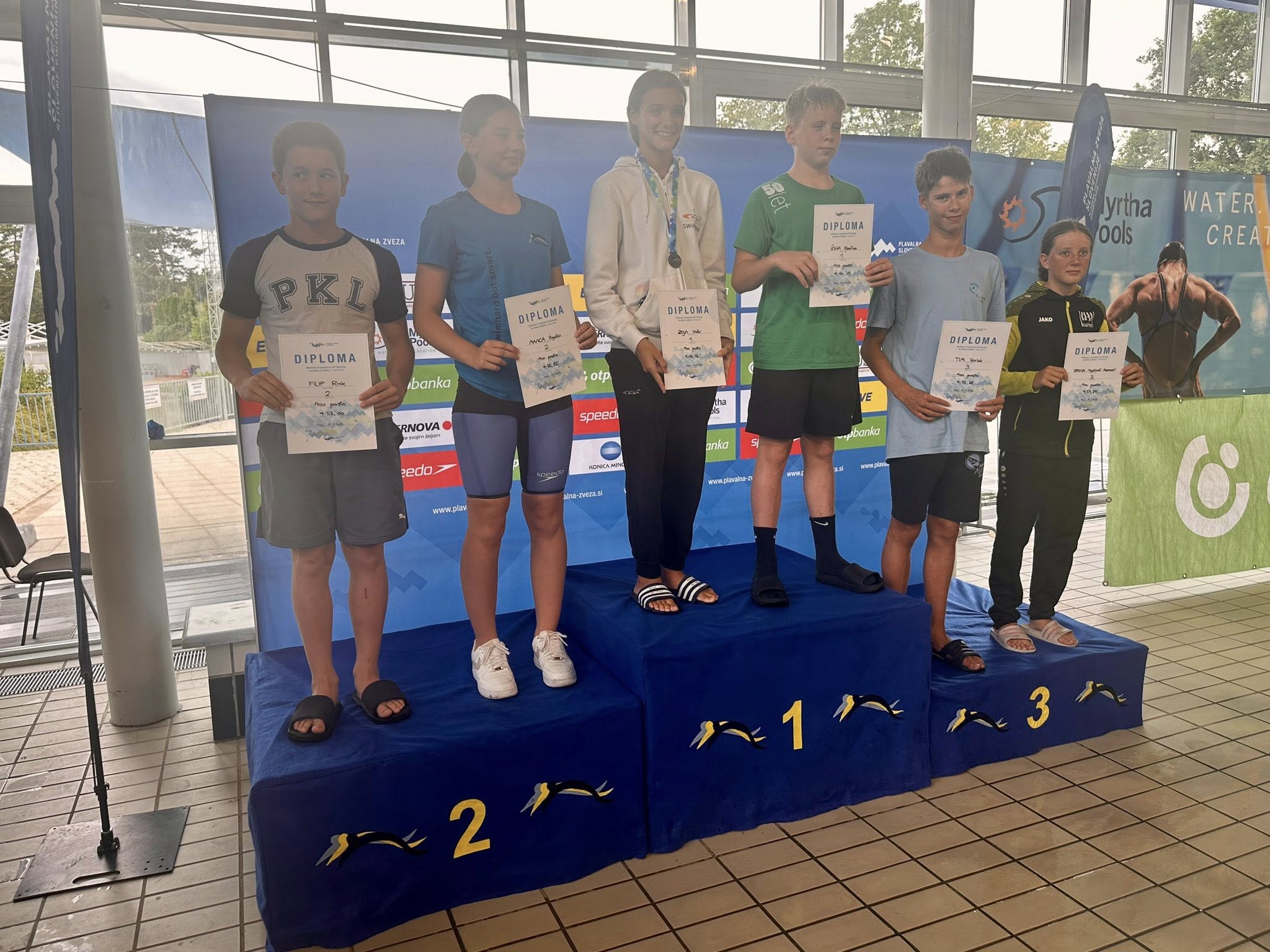 Med mlajšimi dečki je bil nastop Anžeta Kos izjemen, osvojil je zlato medaljo na 400 m prosto, bronasto na 100 m hrbtno in dve diplomi za 1. mesti v mlajšem letniku v obeh disciplinah Alina Paternoster je bila četrta na 400 prosto, medaljo pa je zgrešila le za las. V finalu se je odlično borila tudi Zala Simonič.