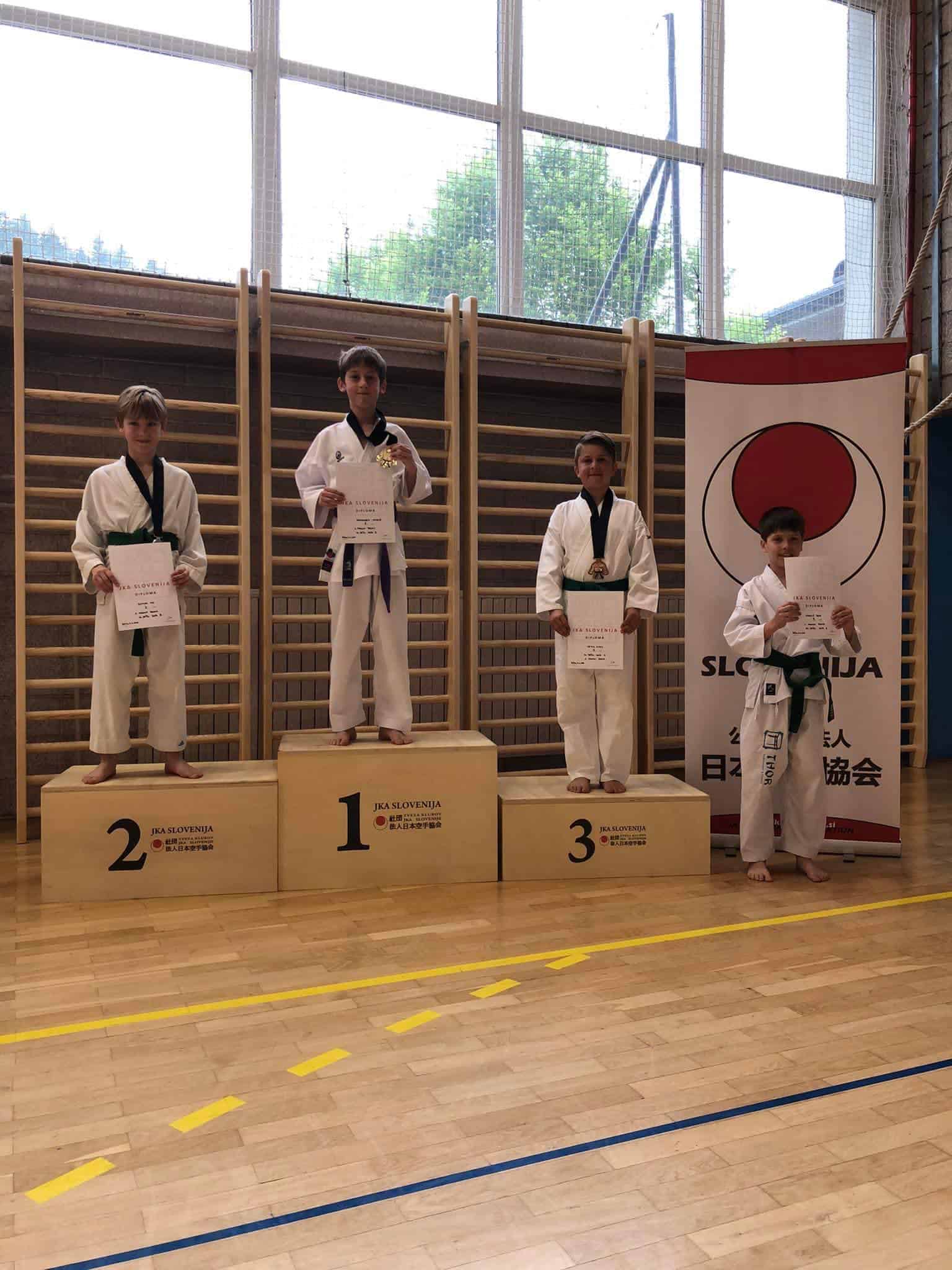 Mlajši dečki kihon ippon kumite: 1. mesto Matevž Mencinger in Karate kluba Mežica, 2. mesto Vid Kotnik Karate klub Prevalje, 3. mesto Jan Plaznik Karate klub Mežica, 3. mesto Igor Vukovič Karate klub Prevalje.