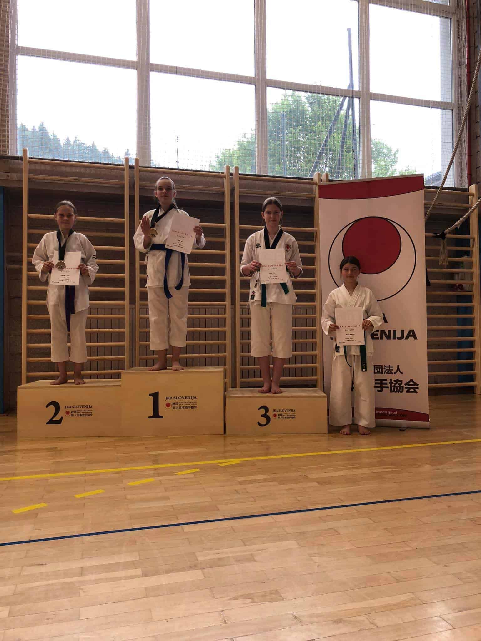 St. deklice kihon ippon kumite: 1. mesto Julija Žvikart Karate klub Mežica, 3. mesto Sarah Sveček iz Karate kluba Mežica.