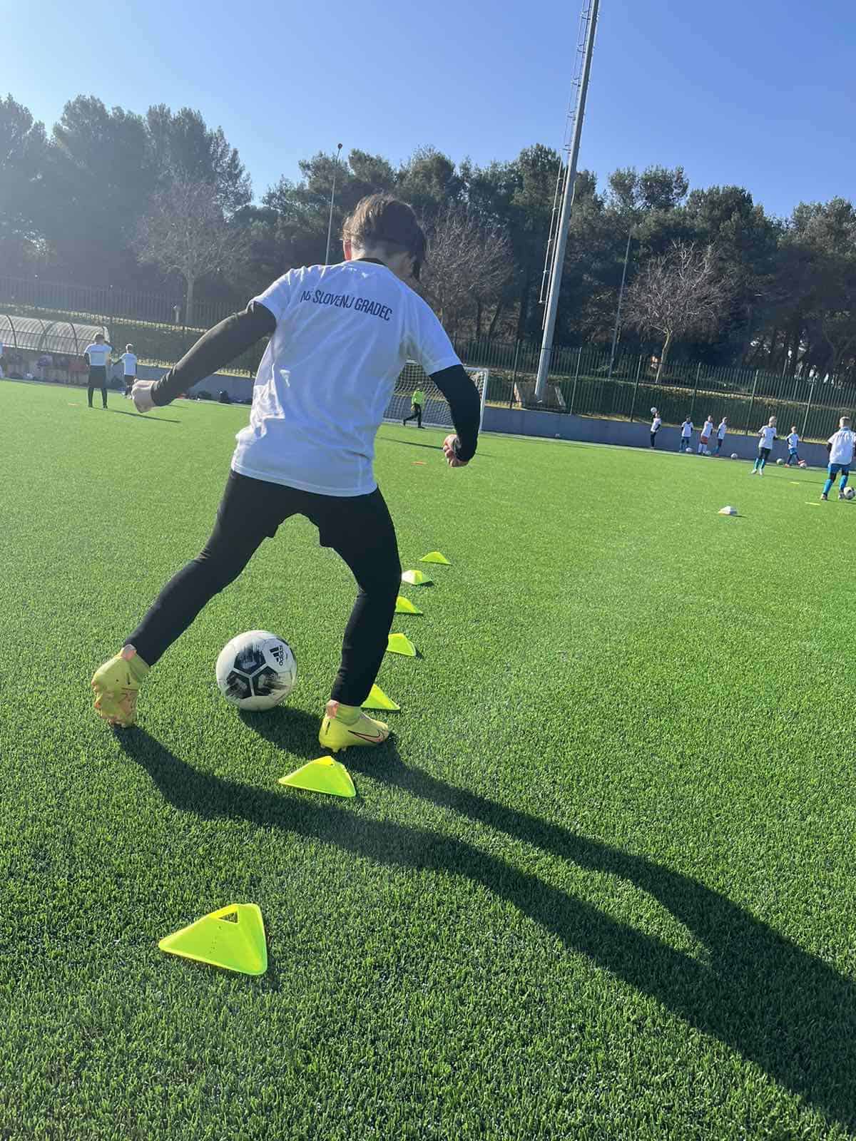 Na odlično pripravljenih igriščih je vsaka selekcija opravila najmanj pet glavnih treningov, vratarji in poškodovani igralci pa so imeli na voljo še dodatne specialne treninge in vaje. Dekle in fantje so imeli na voljo čisto vse, kar imajo na voljo velike športne ekipe, zato verjamemo, da je bila to vrhunska izkušnja čisto za vse sodelujoče. Drugi dan sta vodja šole in klubski zdravnik pripravila krajše izobraževanje o športu, nogometu, zdravi prehrani, preventivo pred poškodbami ... Vsekakor so otroci poslušali o temah, ki jim bodo v življenju prišle še kako prav. Ravno med predavanjem pa smo iz Umaga dobili žreb skupin najmočnejšega turnirja za mlade ta hip, ki se ga udeležujeta dve selekciji. Fantje se bodo med drugim pomerili z evropskim gigantom AC Milanom. Da smo malo razbili monotonost, smo koristili tudi hotelski bazen, selekcije pa so odigrale tudi prijateljsko srečanje z domačini iz Rovinja. Da je bilo še vse bolj veselo smo vmes praznovali tudi dva rojstna dneva, s soigralci sta 12 svečk upihnila Oskar in Voranc.