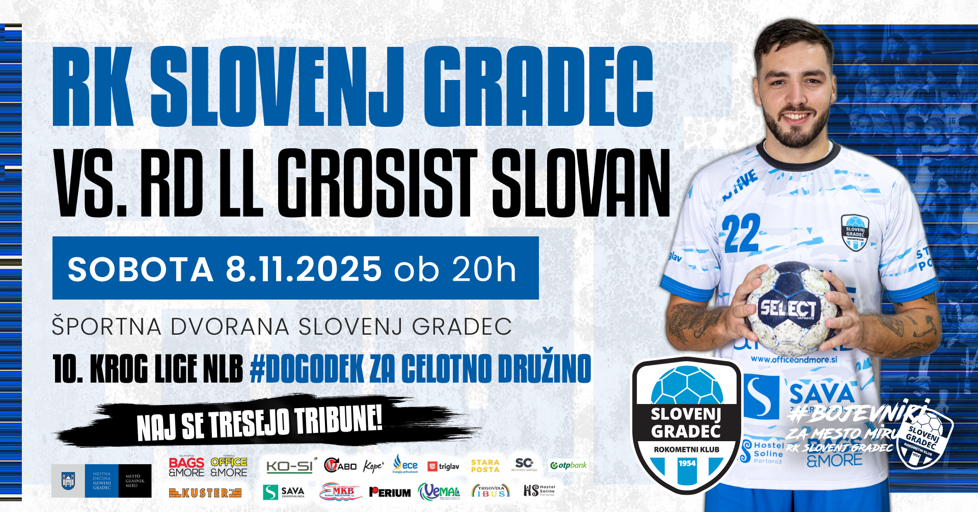 Po torkovi zmagi v Dobovi (34:29) in uvrstitvi v četrtfinale Pokala Slovenije se v Slovenj Gradcu obeta nov rokometni spektakel. V goste prihajajo aktualni državni in pokalni prvaki, ekipa RD LL Grosist Slovan, kar napoveduje derbi kroga in pravo športno poslastico za domače navijače.