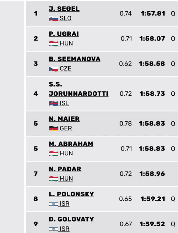 Manj vesela je bila dosežka Mariborčanka Katja Fain, ki se je s 17. mestom in dosežkom 2:01,32 tudi s kančkom sreče prebila v popoldanski polfinale, kjer bo imela novo priložnost.