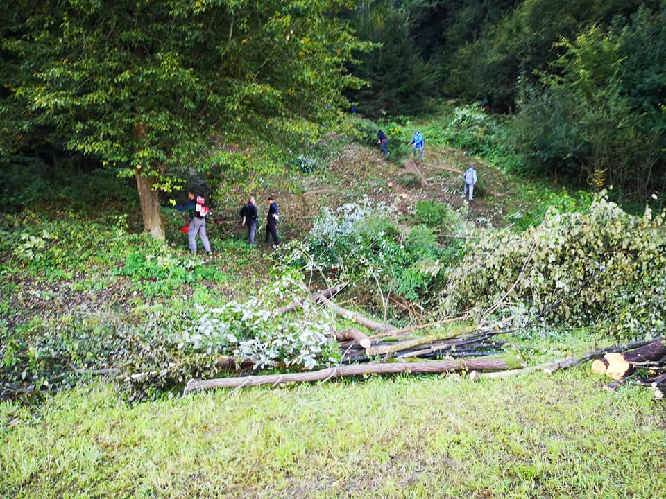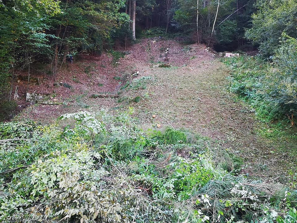 FOTOGALERIJA: Čiščenje in priprava terena za gradnjo skakalnic v Dobji vasi.