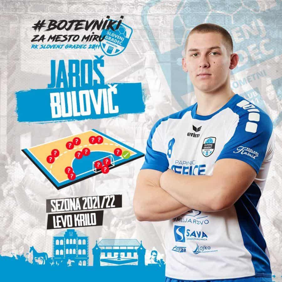 Vodstvo kluba iz mesta miru, predstavlja prvega bojevnika, ki bo v prihodnji sezoni 2021/2022 nosil belo - modri dres. To je postal otrok kluba Jaroš Bulovič. Jaroš je v letošnji sezoni veljal za pomembnega člena čete Sebastjana Soviča. S svojo borbenostjo in nepopustljivim žarom je v obrambi nasprotnikom povzročal velike težave. Njegova natančna desnica, pa je na levem krilu poskrbela za kar nekaj lepih in atraktivnih zadetkov. Kljub dejstvu, da je za Jaroša zaradi poškodbe kolena sezona že predčasno zaključena, se ljubitelj slovenjgraških navijačev že pripravlja na novo.