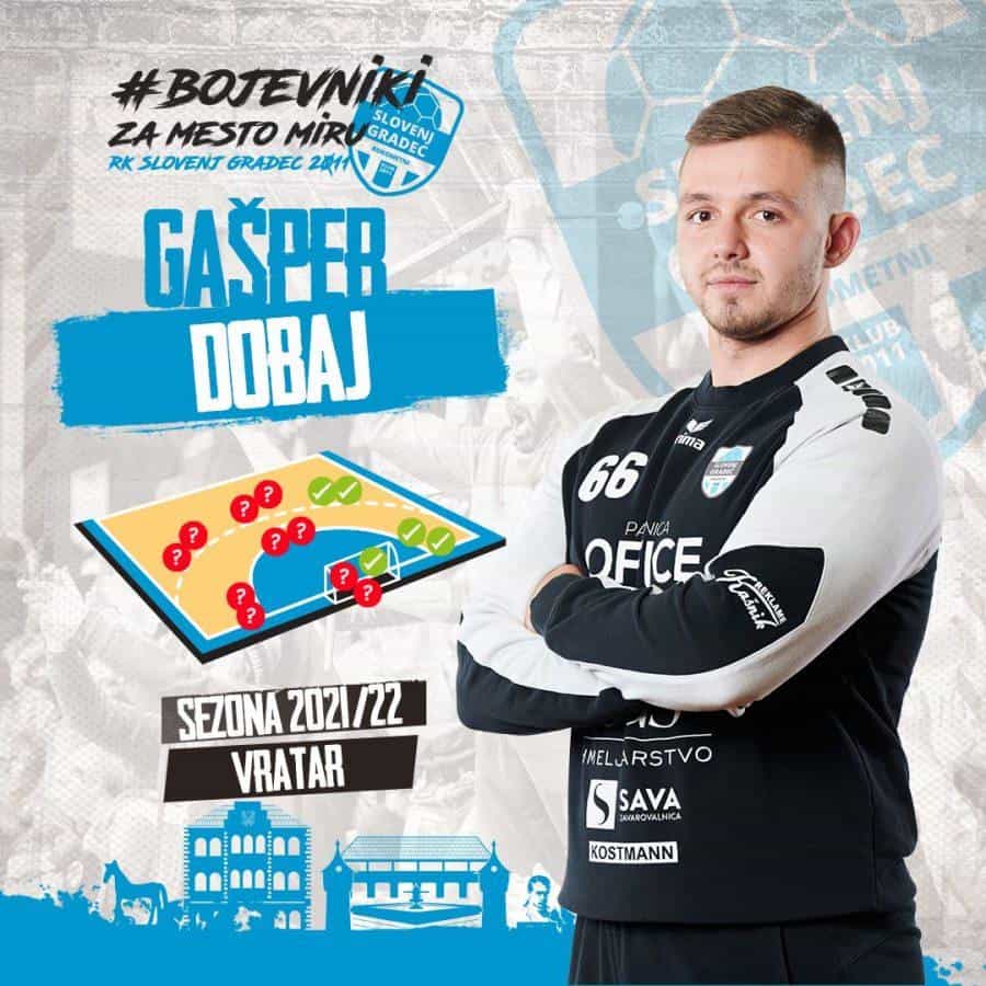 Vratar zlate mladinske reprezentance ostaja v mestu miru tudi prihodnjo sezono. Gašper Dobaj sigurno velja za enega perspektivnejših vratarjev v slovenskem prvenstvu. Športna pot je začel v rojstnem Velenju. Kasneje so ga odlične predstave popeljale v Celje, nastopal je tudi za Urbanscape iz Škofje Loke ter Koper. Ker pa si je Gašper želel stopničko višje v svojem rokometnem mozaiku se je odločil za družino bojevnikov. Letošnje odlične predstave so ga popeljale do podaljšanja zvestobe klubu iz mesta miru.