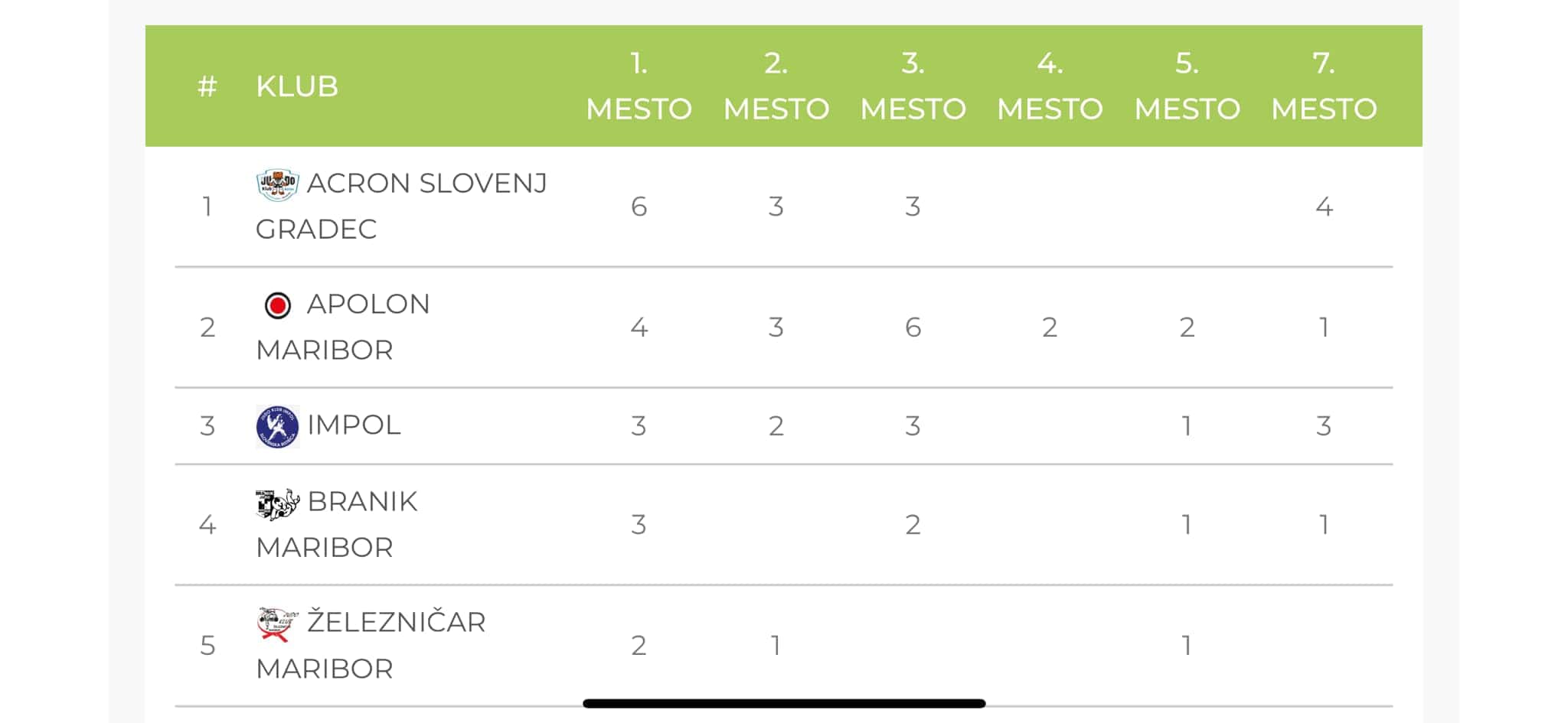 Velik uspeh je dosegel tudi Judo klub Acron Slovenj Gradec, ki je v kategoriji članov in članic ter kadetov in kadetinj osvojil prvo mesto po žlahtnosti medalj.