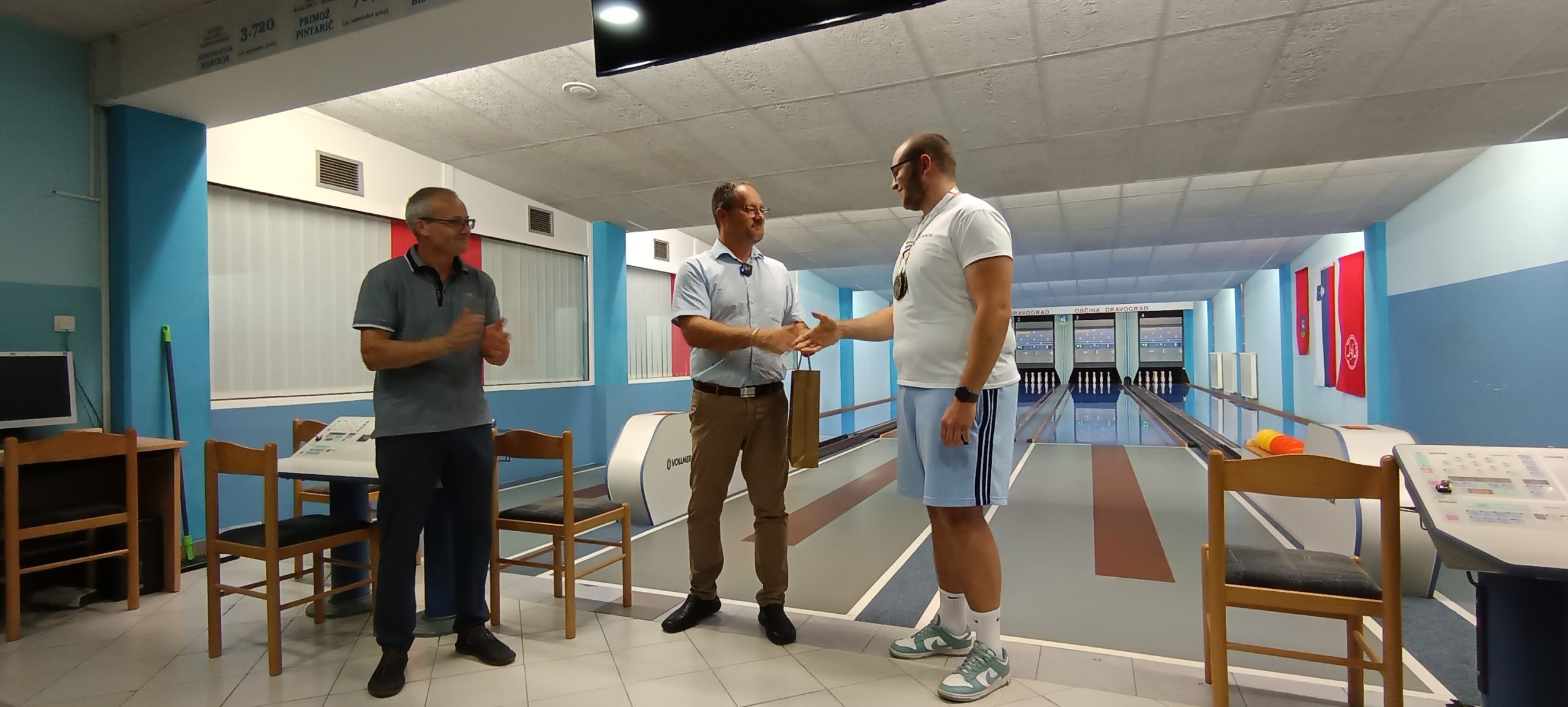 Vsi zbrani – med njimi tudi župan in podžupan Občine Dravograd, predsednik KS Dravograd in predsednik kegljaškega kluba Dravograd, ter ljubitelji kegljanja – so z aplavzom, čestitkami in iskrenim ponosom pozdravili svojega šampiona.