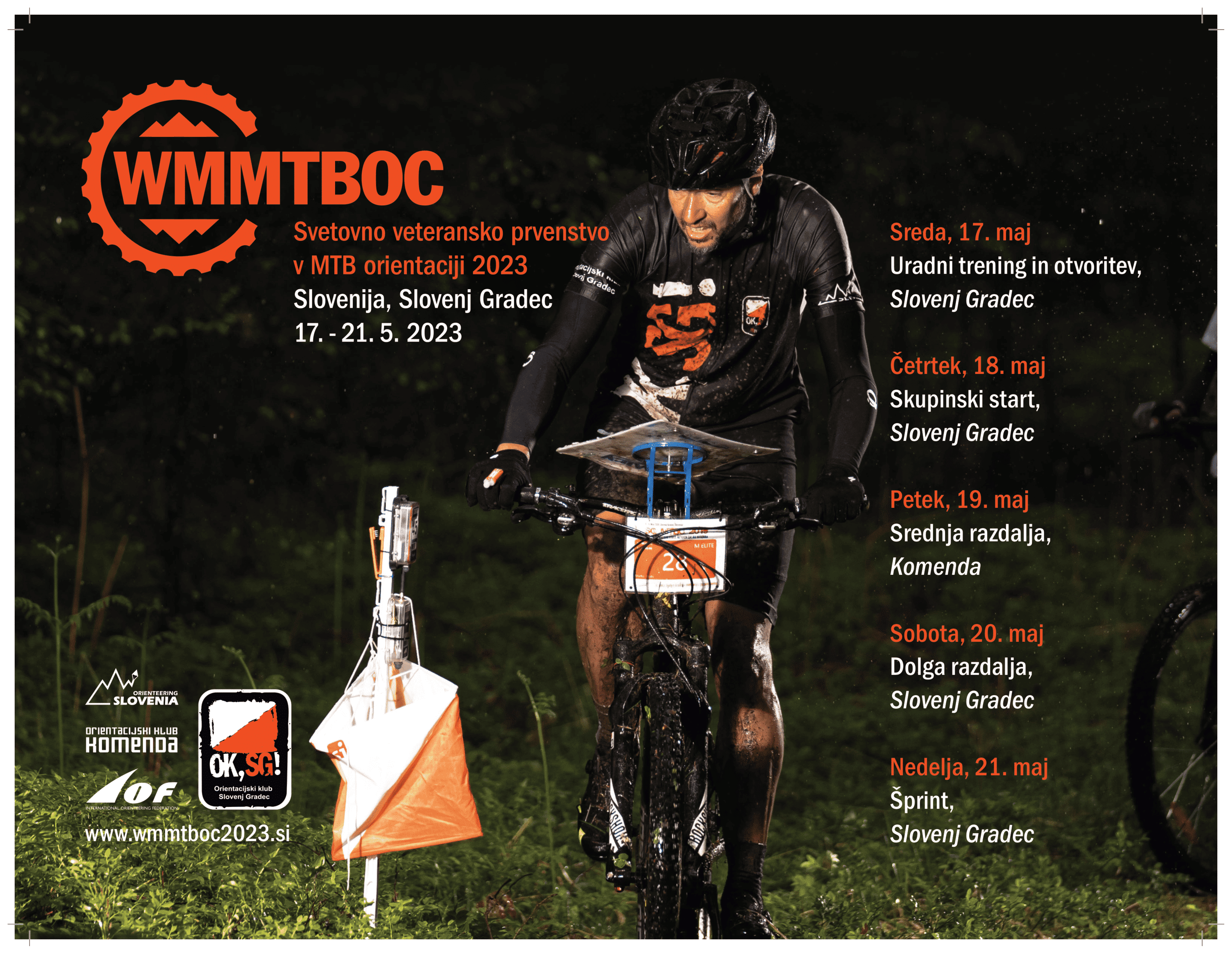 Ponosni smo, da svetovno prvenstvo v MTBO, petdnevno prireditev s štirimi dirkami, prvič gostimo v Sloveniji. Gostitelja tekmovanja sta kraja Komenda in Slovenj Gradec, ki je že od leta 2005 pomembno prizorišče gorsko kolesarske orientacije v državi.