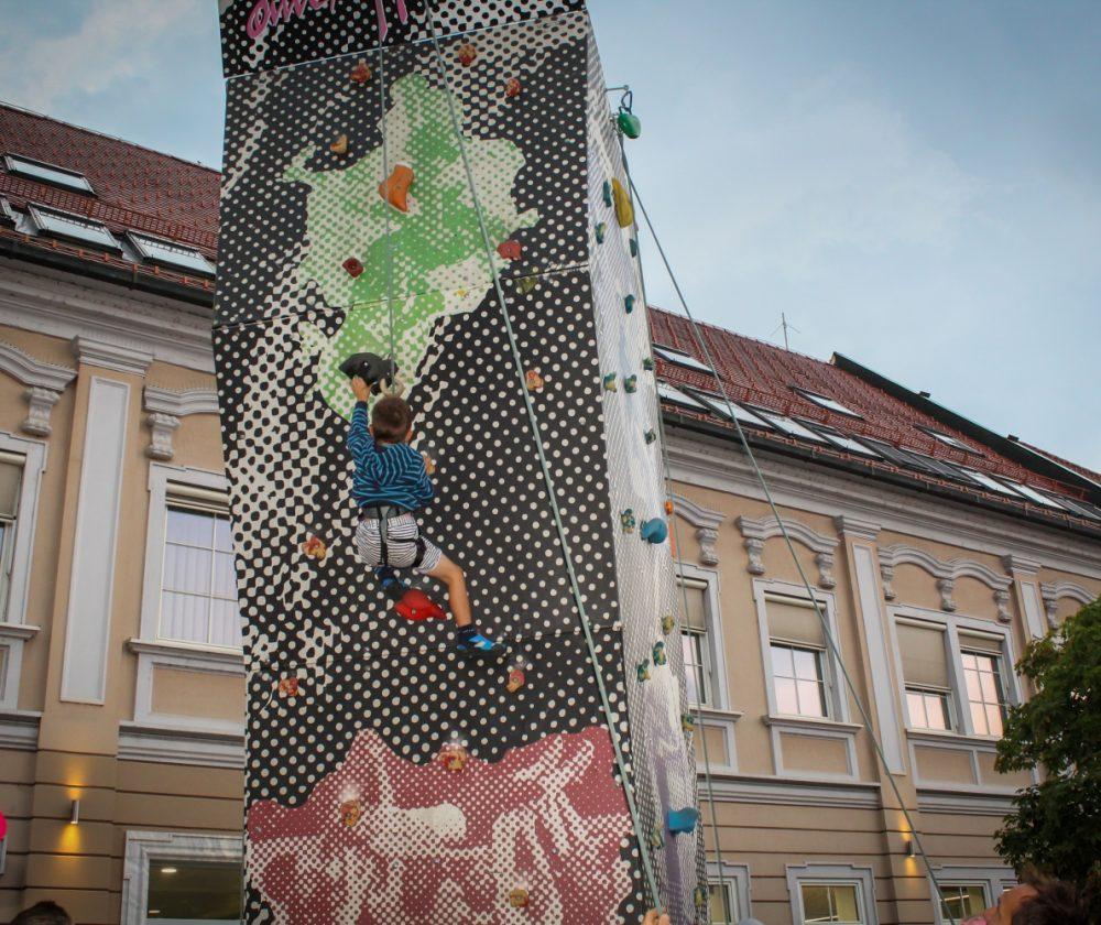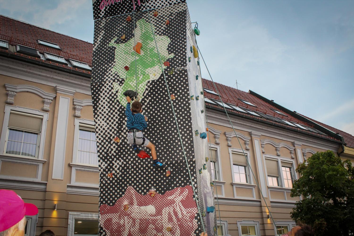 Janji so se prišli poklonit tudi mladi plezalci iz Alpinističnega kluba Slovenj Gradec, ki so svoje znanje pokazali na začasno postavljeni plezalni steni sredi Glavnega trga.