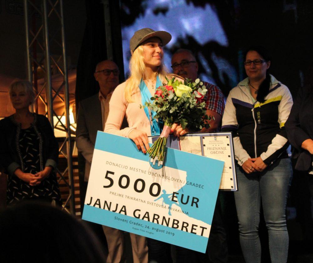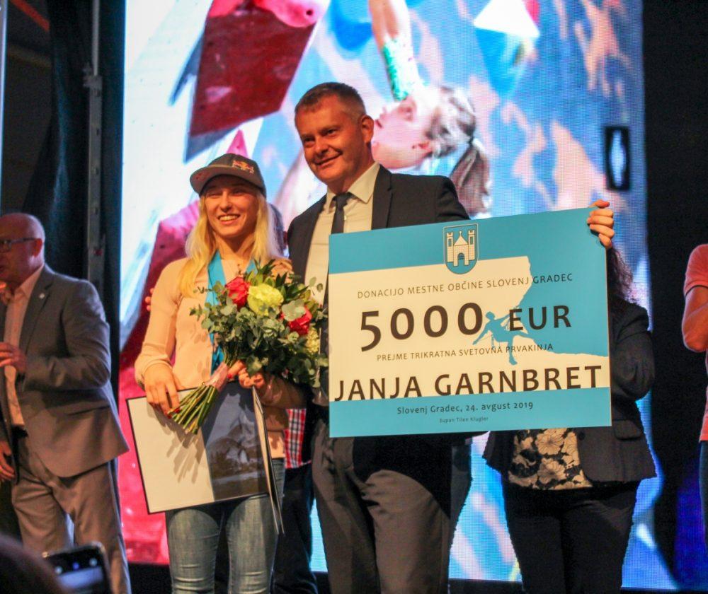 Včeraj, 24. avgusta, so v Slovenj Gradcu veličastno sprejeli domačinko 20-letno Janjo Garnbret iz Šmartnega pri Slovenj Gradcu, najuspešnejšo športno plezalko na svetu, ki je pred dnevi na svetovnem prvenstvu na Japonskem bila praktično nepremagljiva in se je v domovino vrnila s tremi zlatimi medaljami.