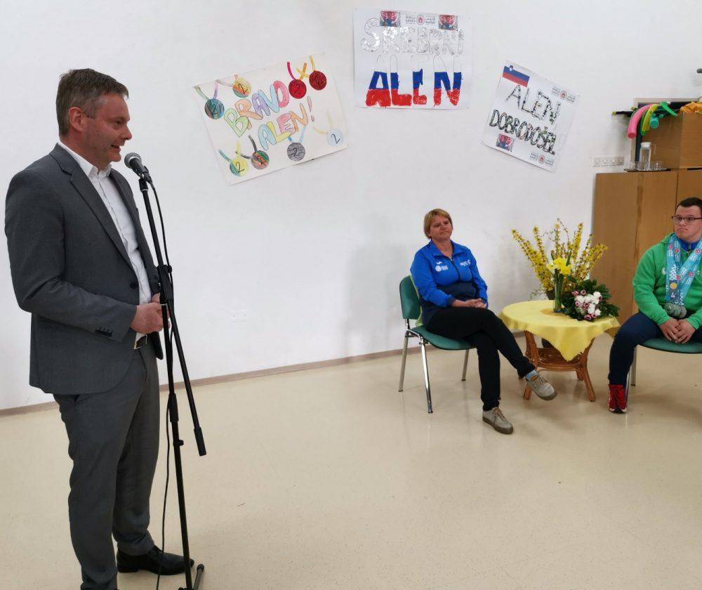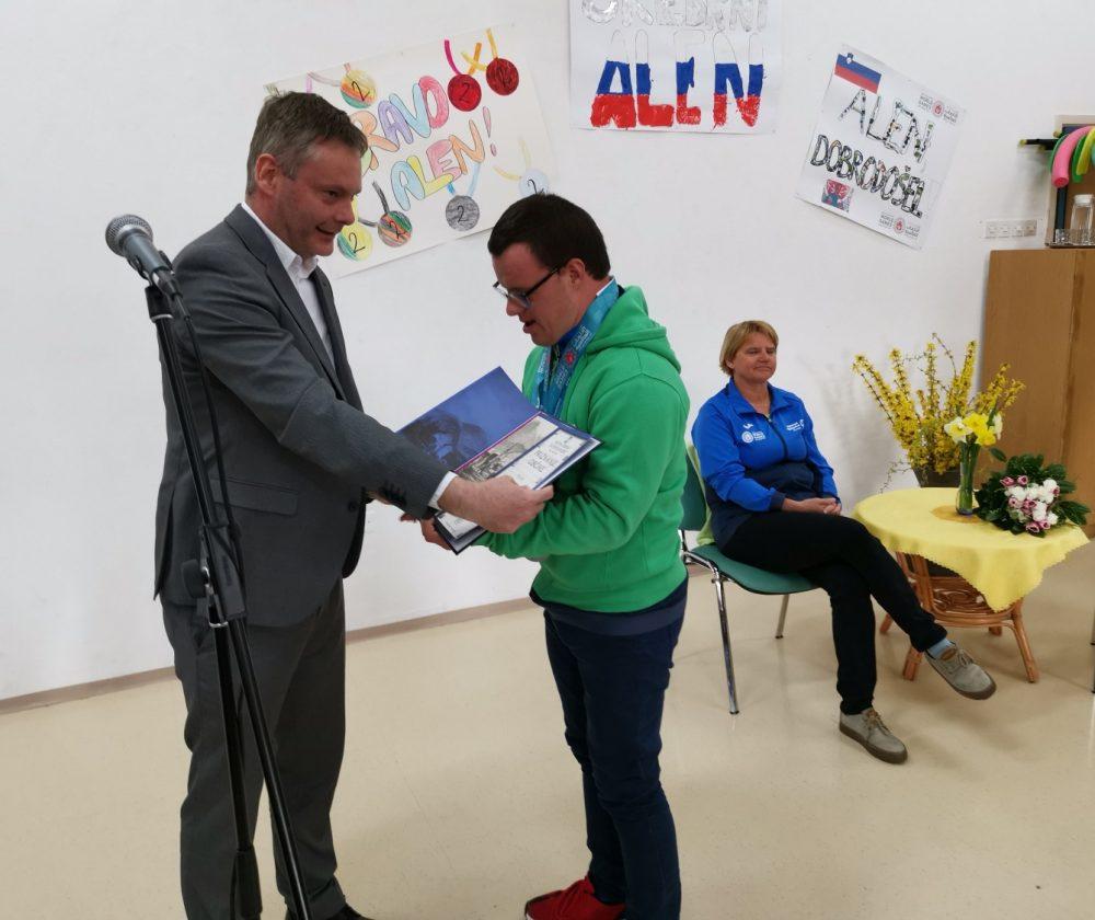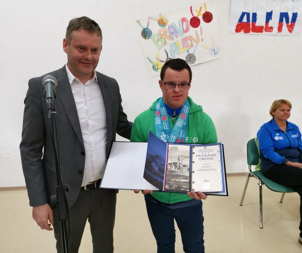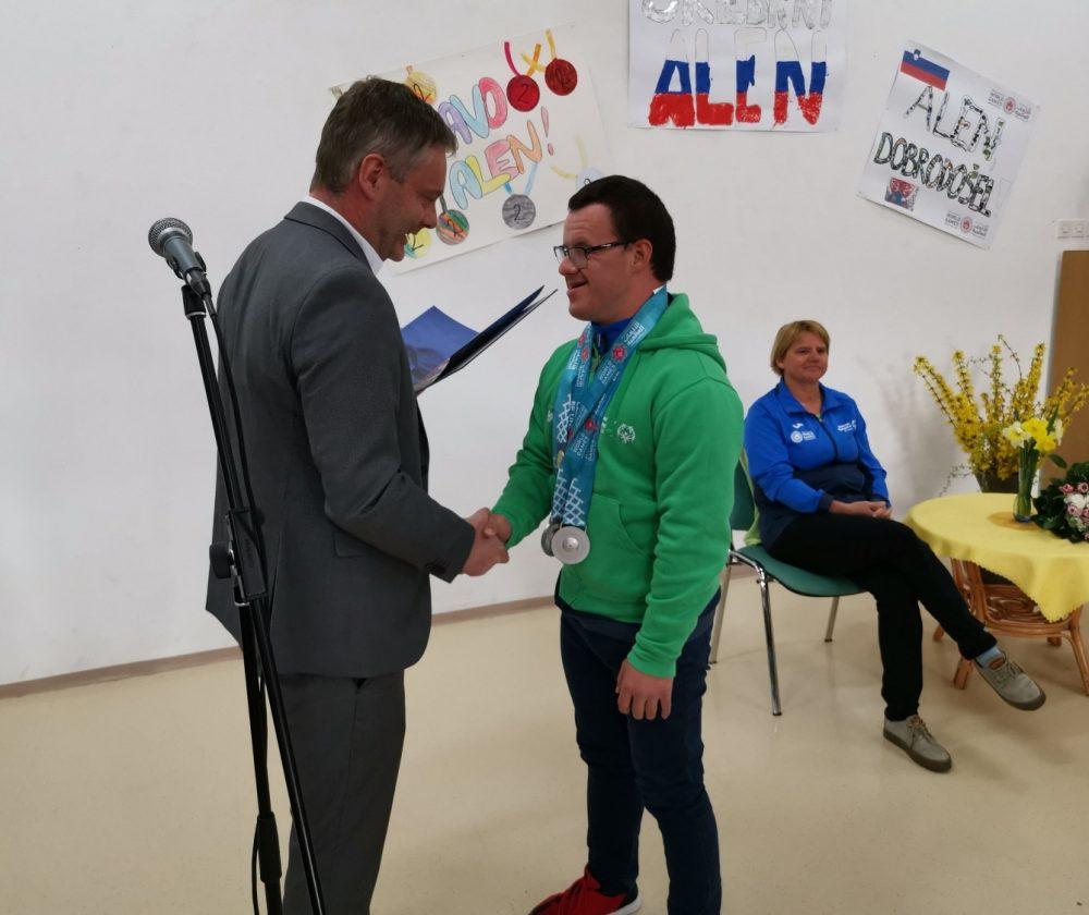 Danes je na Tretji OŠ Slovenj Gradec potekal sprejem Alena Šošterja, ki se je od 14. do 21. marca letos v Abu Dhabiju in Dubaju udeležil Poletnih svetovnih iger specialne olimpijade.
