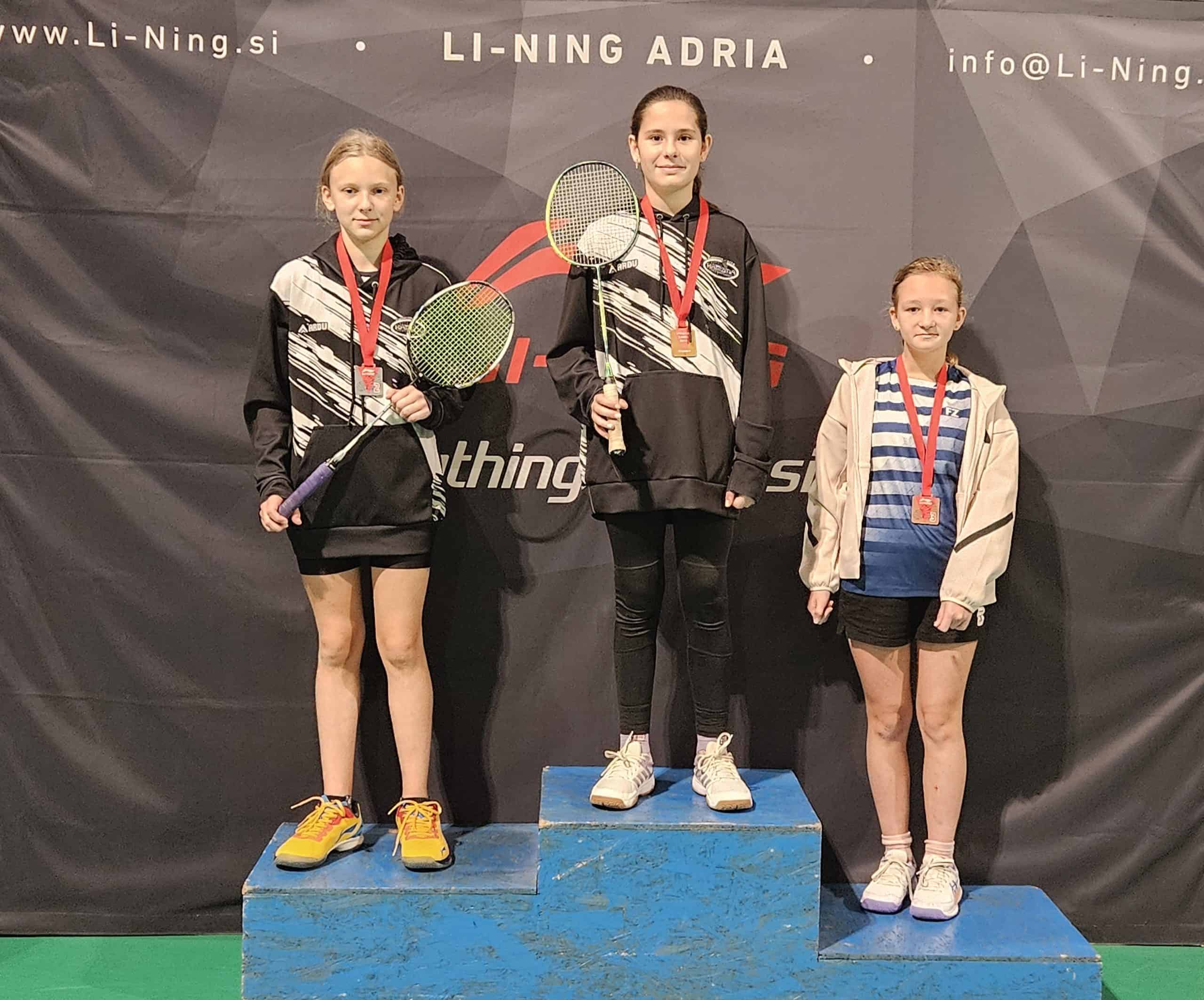 V kategoriji U-12 sta Lia in Nuša dosegli dvojno zmago za BK Karizma. Še posebej suverena je bila Lia Duler, ki je dosegla šest zmag na šestih tekmah in zanesljivo, brez nihanja v igri, osvojila zlato medaljo. Odlična drugo mesto je osvojila Nuša Potočnik s petimi zmagami in le z enim porazom in sicer je edini poraz dosegla ravno proti Lii (9:15).