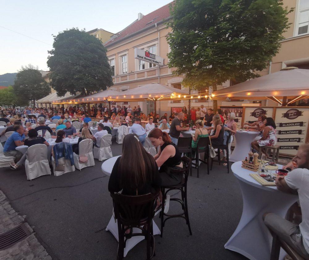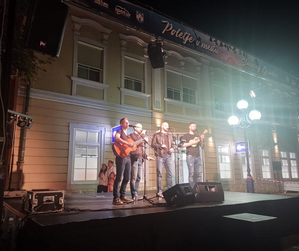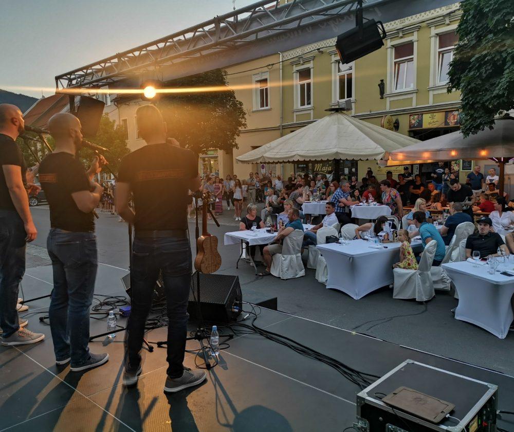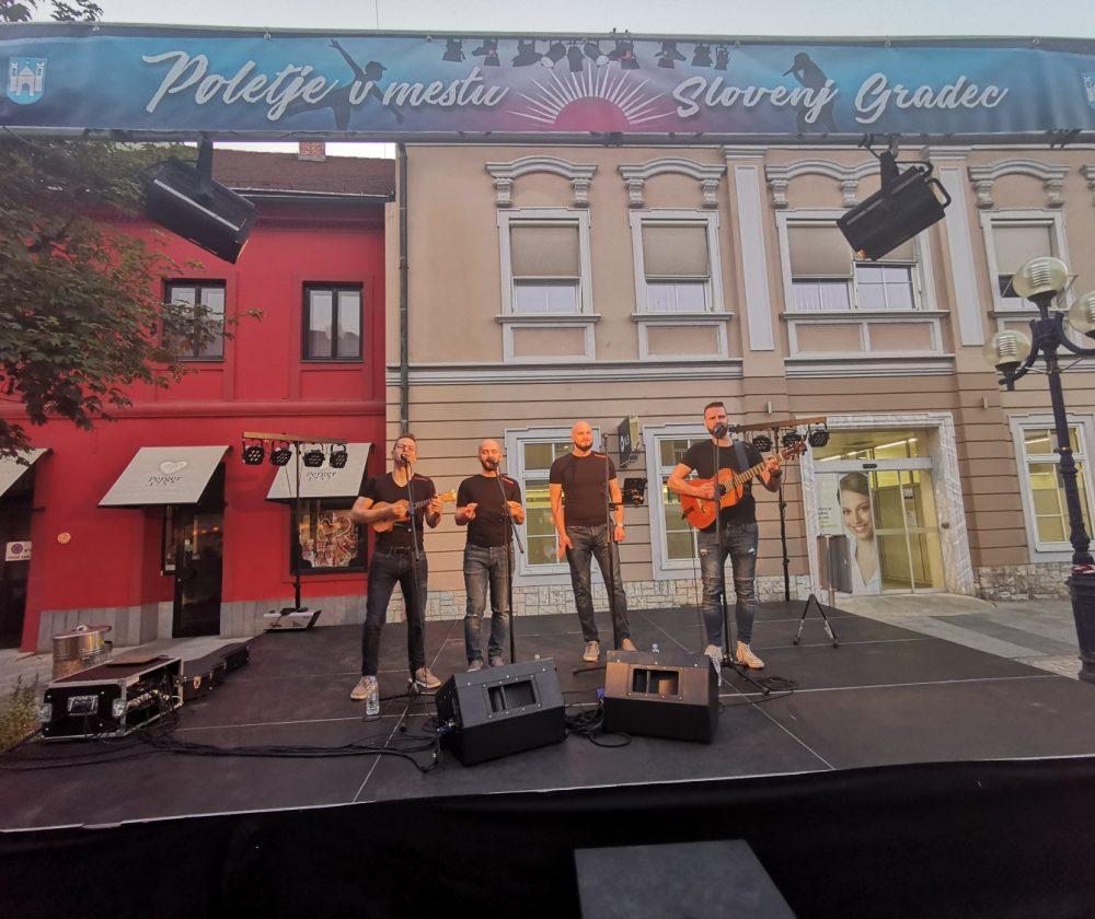 V mestnem jedru smo ob dobri hrani in pijači za katero je poskrbela Pivnica in picerja Kuf'r prisluhnili glasbi skupine Kvatropirci. Uživali smo ob zvokih kitare in štiriglasnega petja. Vse pripravljene mize so bile napolnjene do zadnjega kotička, ker jih ni bilo dovolj za vse goste je okoli 100 ljudi glasbi prisluhnilo kar stoje. Organizatorji in nastopajoči so poskrbeli za super ambient, nastop ob katerem smo vsi zelo uživali je na prijetni poletni večer trajal vse do 23. ure.