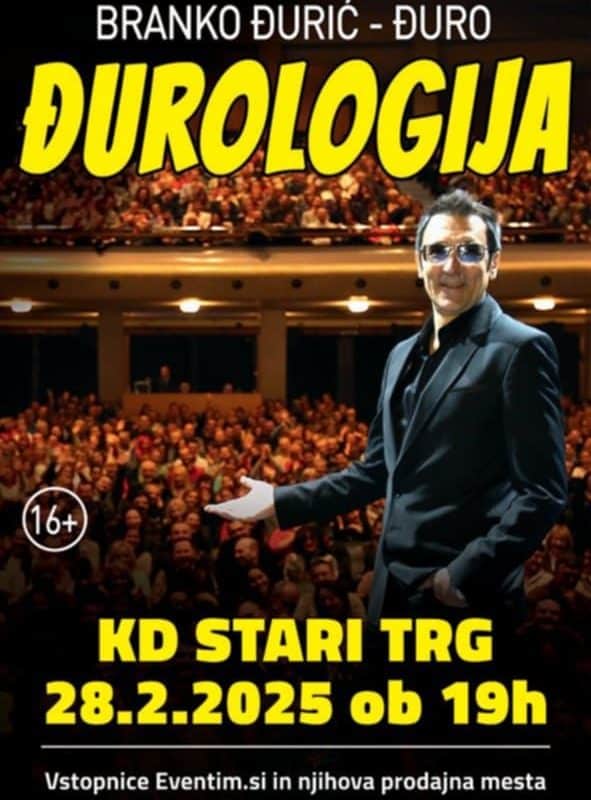 Legenda slovenske in širše igralske in stand-up scene Branko Đurić - Đuro vas bo na odru nasmejal s svojimi razmišljanji o vsakdanjem življenju. “Đurologija je zbirka mojih misli, ki na zabaven način predstavljajo vse, kar me nasmeji in zabava, pa tudi vse, kar me nervira," pravi Đuro, zagotovo eden najbolj znanih in prepoznavnih komikov pri nas, ki je svojo kariero začel kot del skupine Nadrealisti, nato pa uspešno deloval tudi v svetu filma in televizije.