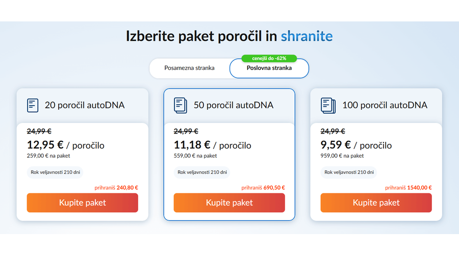 Paketi poročil autoDNA za poslovne stranke