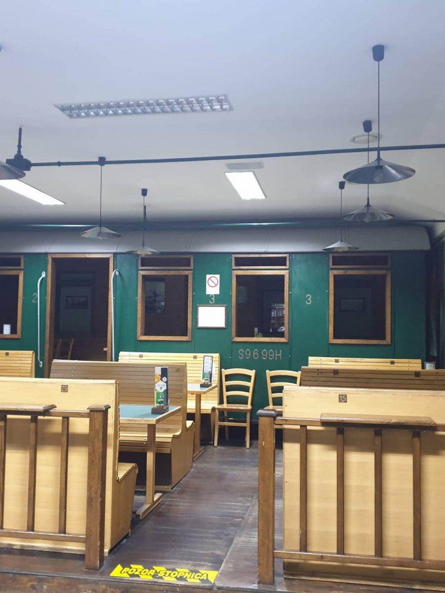 Notranjost picerije med drugim krasi čisto pravi’ vagon.