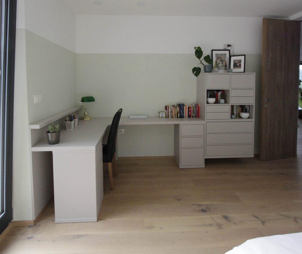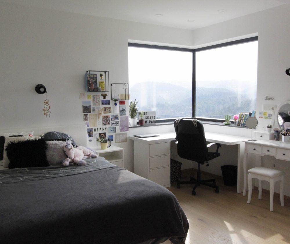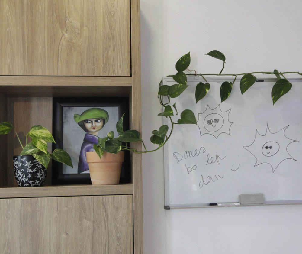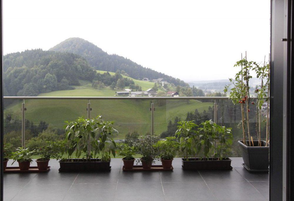 Nadstropje višje imajo svoj kvartir že skoraj odrasli otroci. Tam je velik bivalni prostor, povezan z balkonom, nato še fitnes kotiček, kopalnica in dve skladno opremljeni spalnici. Prostrani balkon ponuja obilo prostora za vzgojo čilijev in paradižnika v loncih.