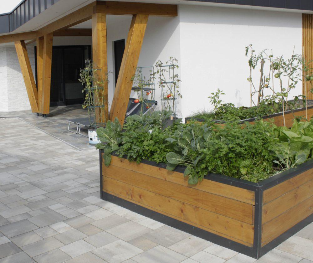 Še več zelenjave pa je spodaj, na vrtu. Tam sta si zakonca Založnik na robu parcele omislila lesene visoke grede z jeklenimi okvirji.