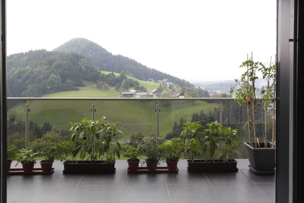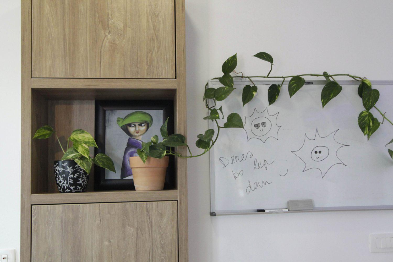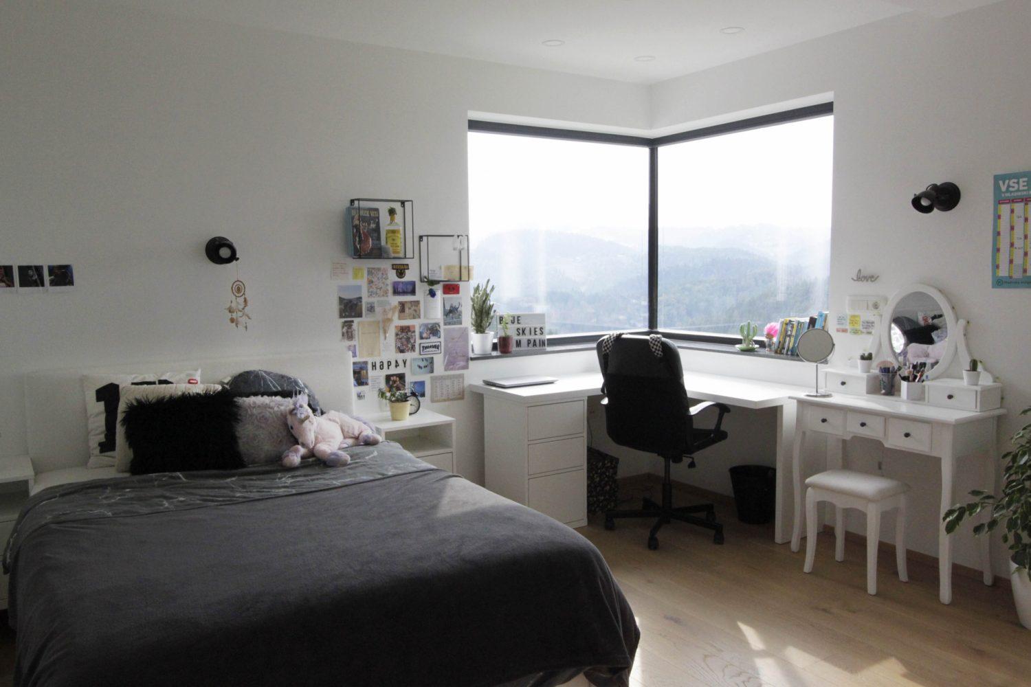Nadstropje višje imajo svoj kvartir že skoraj odrasli otroci. Tam je velik bivalni prostor, povezan z balkonom, nato še fitnes kotiček, kopalnica in dve skladno opremljeni spalnici. Prostrani balkon ponuja obilo prostora za vzgojo čilijev in paradižnika v loncih.