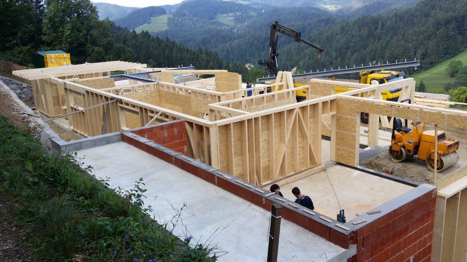 Družina Založnik se je odločila za leseno skeletno gradnjo, to je tradicionalni tip gradnje, v kakršnem se je gradilo na številnih območjih Slovenije še pred uveljavitvijo opeke in betona. V sami konstrukciji je okrog 70 kubičnih metrov lesa, v stene pa je kot izolacijski material vpihanih okoli osem ton celuloze, pridobljene iz zmletega starega časopisnega papirja. Suha gradnja je omogočila vselitev takoj zatem, ko je bila hiša dokončana.