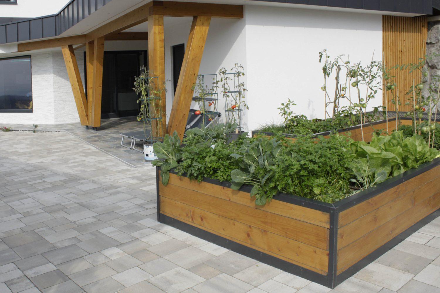 Še več zelenjave pa je spodaj, na vrtu. Tam sta si zakonca Založnik na robu parcele omislila lesene visoke grede z jeklenimi okvirji.