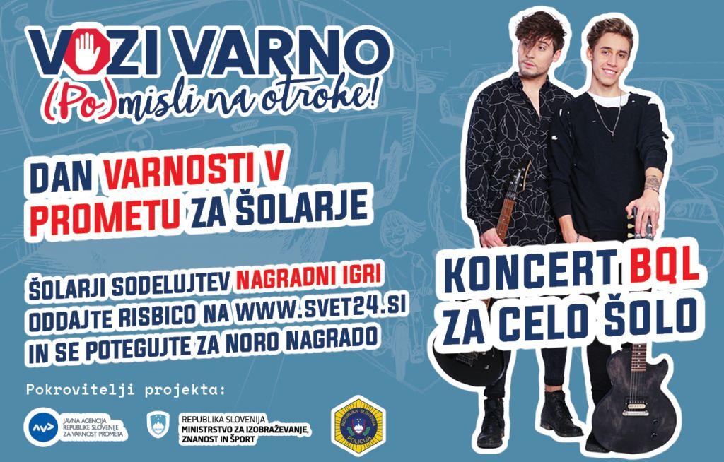 K sodelovanju so vabljeni šolarji od prvega do šestega razreda, ki lahko osvojijo simpatično nagrado - dan varnosti in koncert fantov iz zasedbe BQL, in to za kar celo šolo!